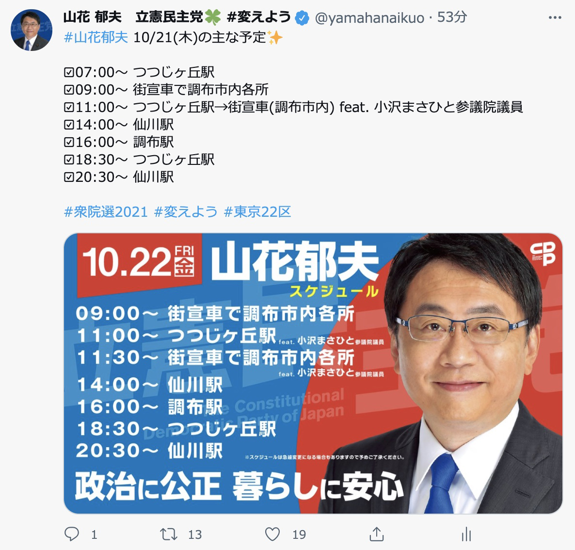 #山花大作戦2021 #衆院選2021 #変えよう #東京22区 #調布 https://t.co/9wZpb5m11z