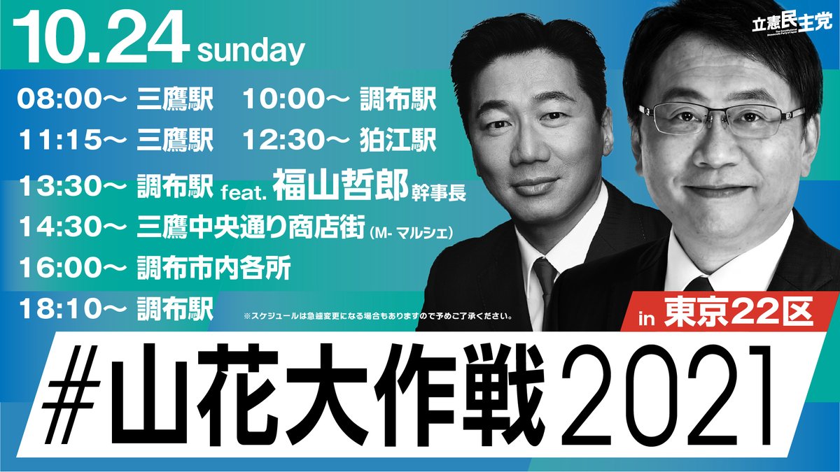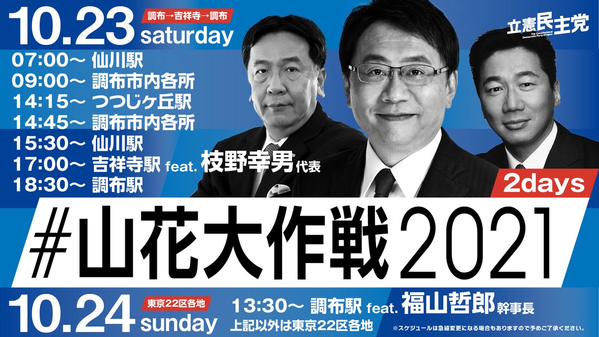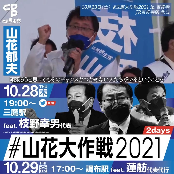 #山花大作戦2021 #変えよう #衆院選2021 #東京18区 #菅直人 #東京22区 #山花郁夫