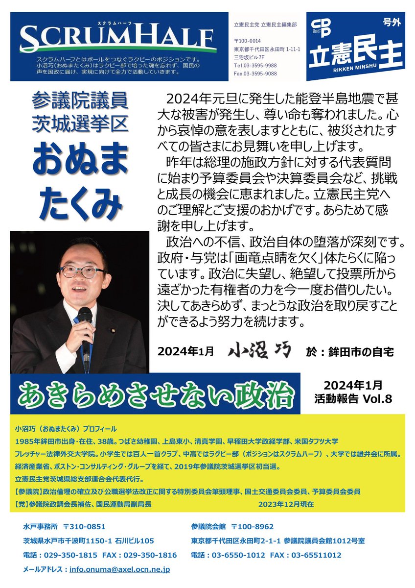 おぬまたくみ【参議院議員/立憲民主党/茨城】(@onuchan1221)