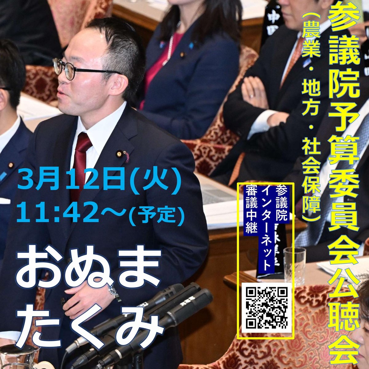 (スタッフ投稿) #参議院予算委員会集中審議 で、#小沼巧 は #蓮舫 議員のパネルを担当いたします。質疑時間は13:59~14:34です質疑の模様はNHKで中継されます。「参議院インターネット審議中継」(https://webtv.sangiin.go.jp/webtv/index.php)でも配信されます。是非ご覧下さい