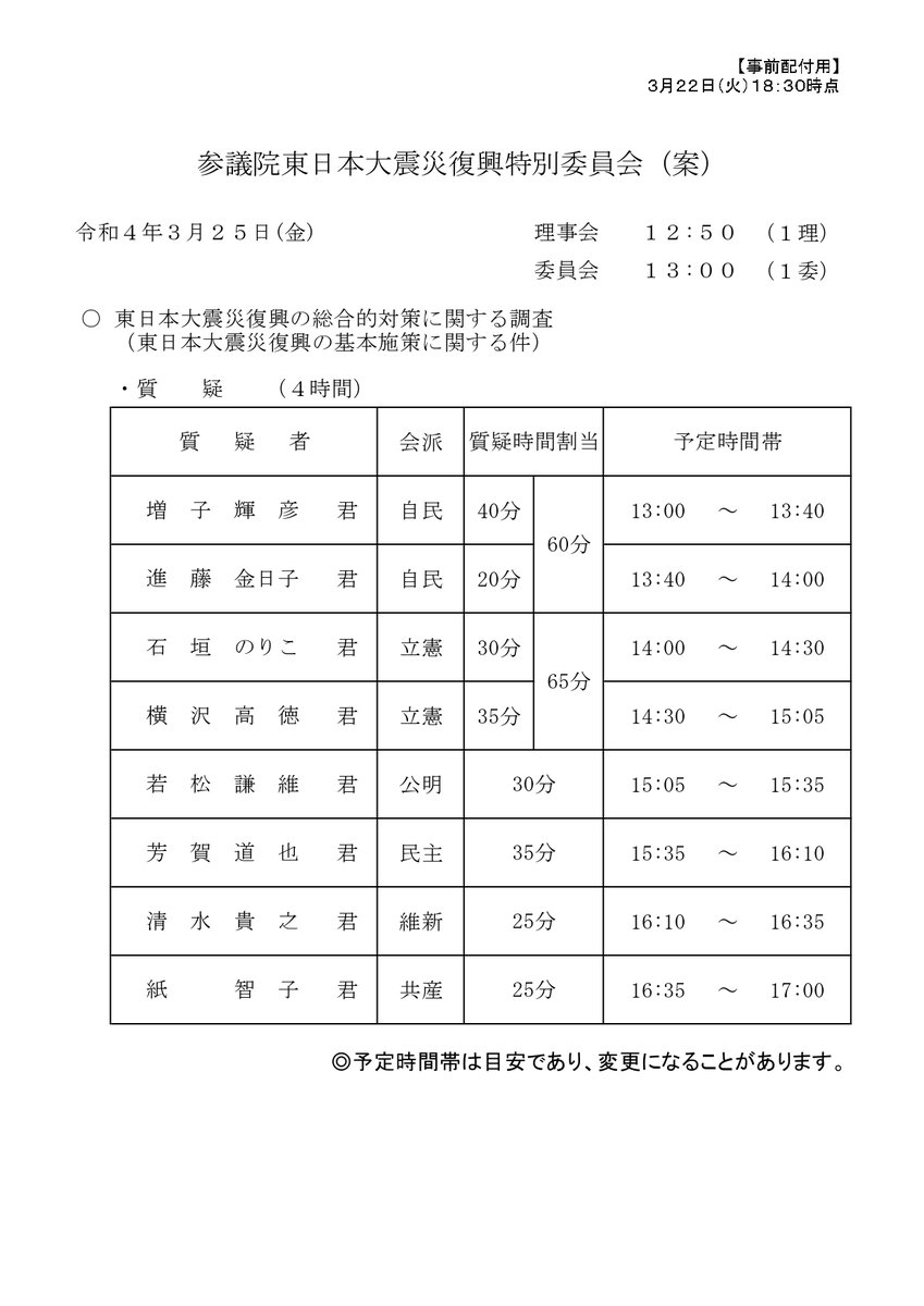 東日本大震災復興特別委員会