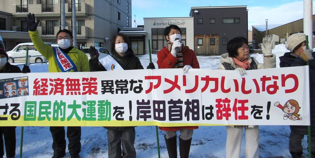 憲法を踏みにじり戦争する国へのひた走る自民・公明政治を許さない❗市民と野党の共同の再構築をはかり、政治の舞台から引きずり降ろし必ず、希望ある新しい政治に変えよう❗と訴えました。