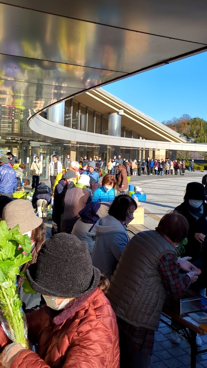 秋の収穫祭の様相。地元で採れた秋野菜を求め多くの人の行列。都市近郊農業の維持はここ生駒市の課題である。2022年生産緑地指定解除に伴う土地売却は実需に応じて。食べていける農業を追求することが先決。#生駒市制50周年 #都市近郊農業 #2022年問題