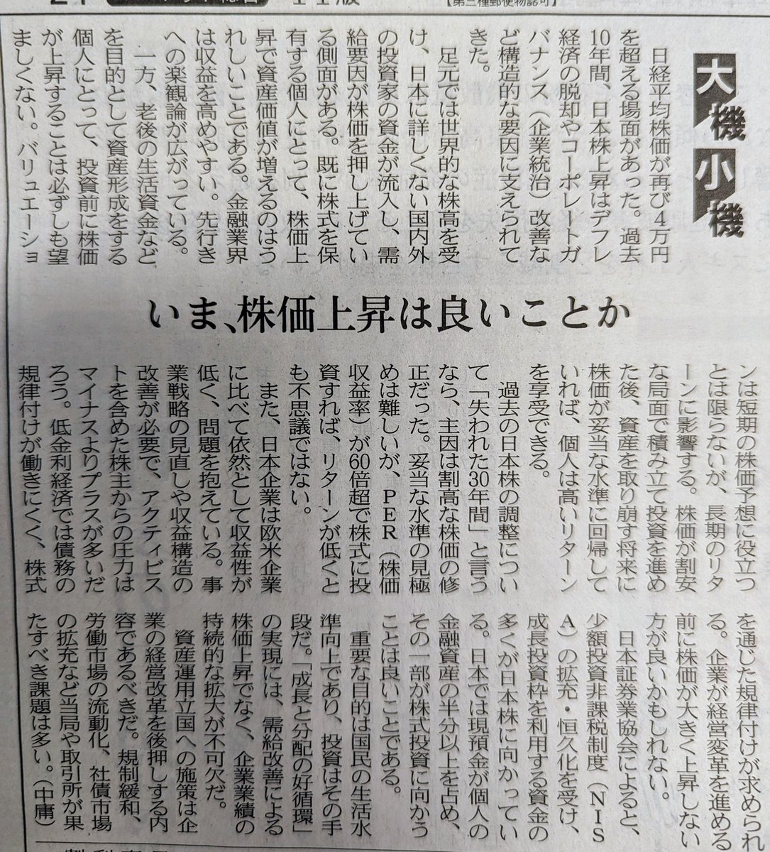 日経平均39,000円台に投資も有り難いが、企業を育てるつもりで長期保有もお願いしたい。34年経て、企業の実力が正しく反映される市場に成熟したと考えたい。安定して推移するよう願います。#日経平均史上最高値