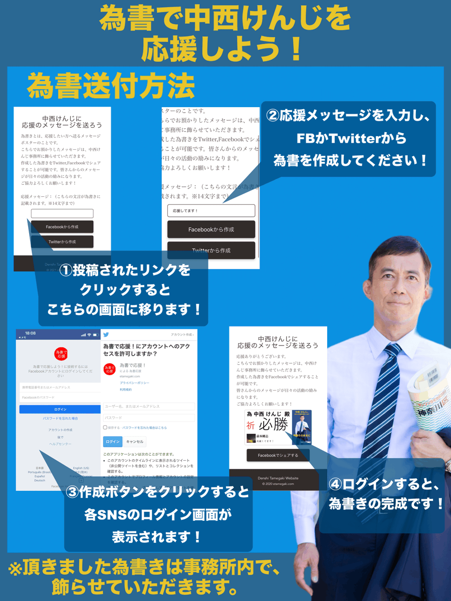 毎日「中西けんじ」の選挙戦奮闘中の新しい写真に更新しています。いろいろと細かい工夫をしています。 https://t.co/5ISRwvKhvj