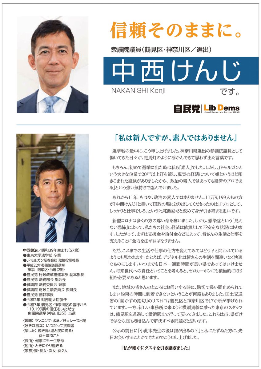 中西けんじ 衆議院議員・自由民主党神奈川三区(鶴見区、神奈川区)支部長@Kenji_Nakanishi