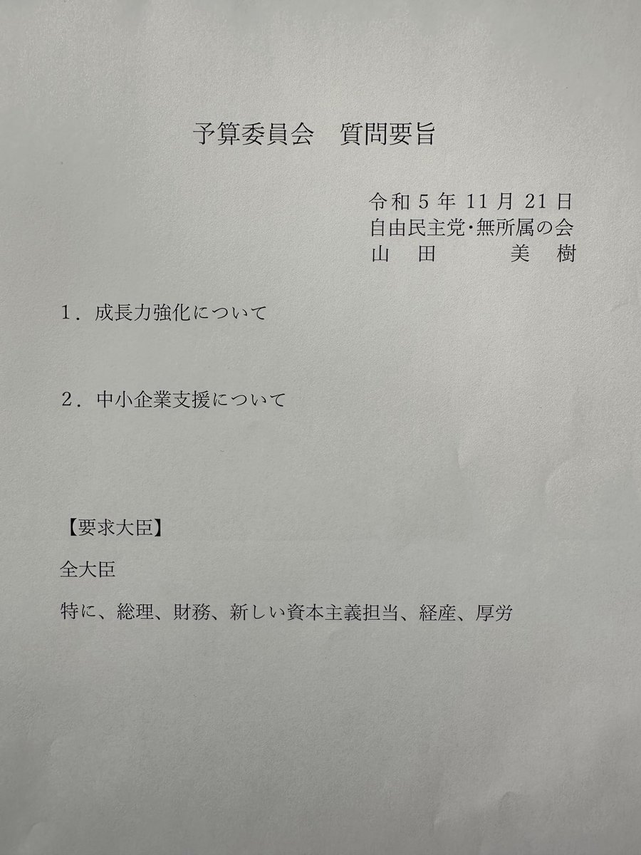 質問通告2日前ルールに従い、既に各省とのレクを全て終えました。