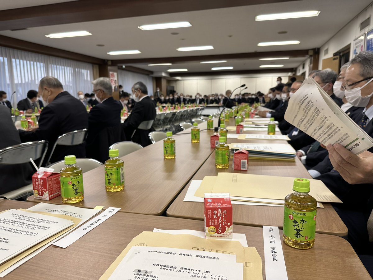 自民党の会議では、災害からの復興の為、缶のリンゴジュース等が稀に出てます。
