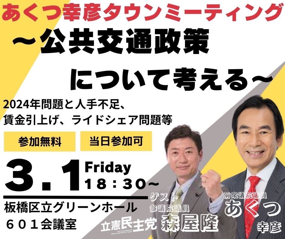 あくつ幸彦 前衆議院議員 立憲民主党(板橋区)@akutsu0626