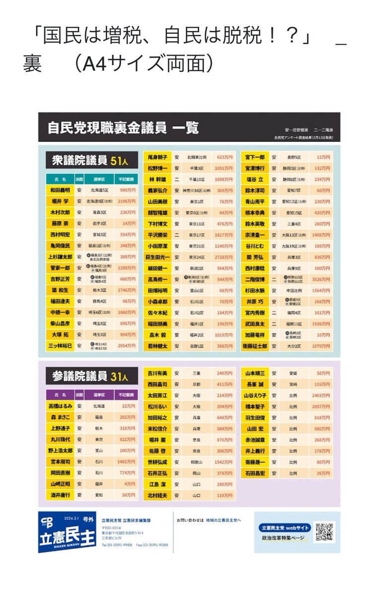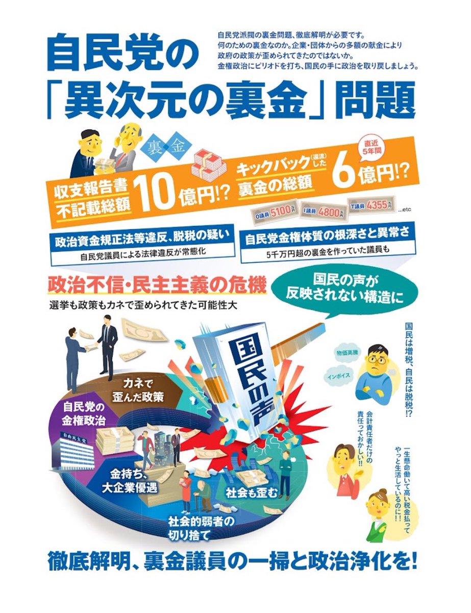 「#企業団体献金の禁止」と「#政治資金パーティの禁止」は次の衆院選の争点の一つになり得ると考えています。野党から見れば当たり前でも、自民党には決してできない政治改革で、彼らは「必ず抜け穴を作る」。「まっとうな政治」との違いを見比べて下さい。#あくつ幸彦