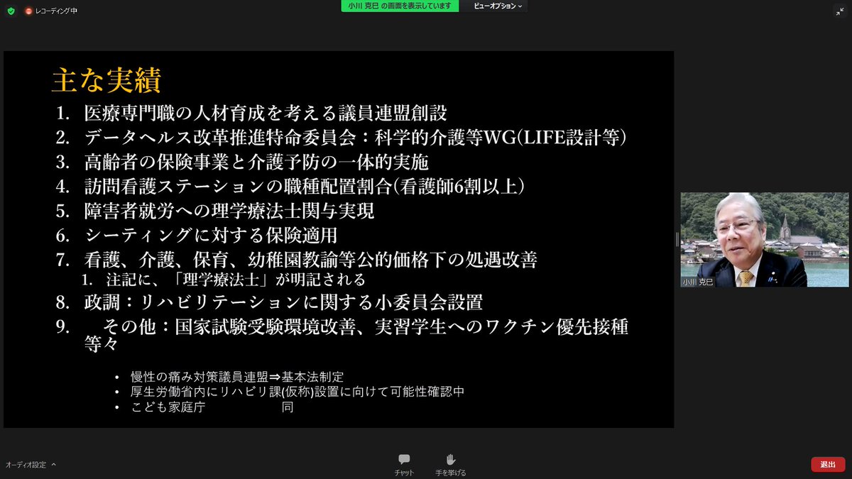 7/17(土)兵庫県理学療法士連盟研修会にて講演、7/21(水)鹿児島県理学療法士連盟幹事会・7/22(木)宮城県理学療法士会新人オリエンテーションにて挨拶をさせていただきました。コロナ禍で対面は叶いませんが、web上で皆様とお顔を合わせる機会をいただき感謝いたします。(秘書)