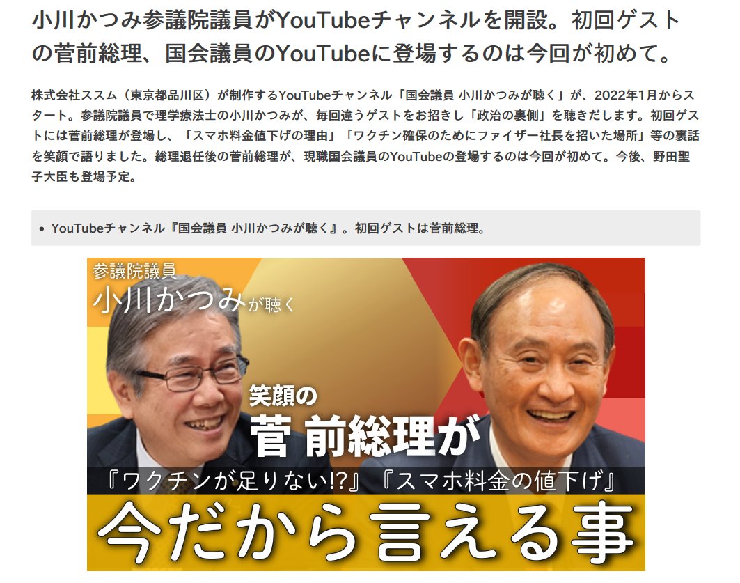 第1弾のスペシャルゲストは菅義偉前総理!