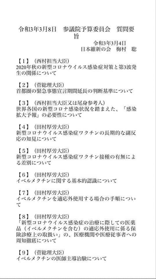 3月4日(金)参議院予算委員会での質疑動画です。