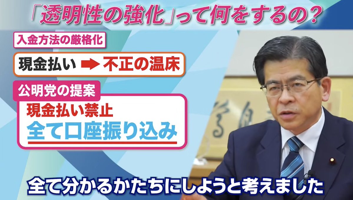 国民の皆さんの信頼を取り戻すため、政治資金規正法の改正など、来年の通常国会に向け、建設的で、実効性のある取り組み、政治改革を公明党としてリードしていきます。また、自民党には厳しい覚悟で自浄作用の発揮を強く望みます。
