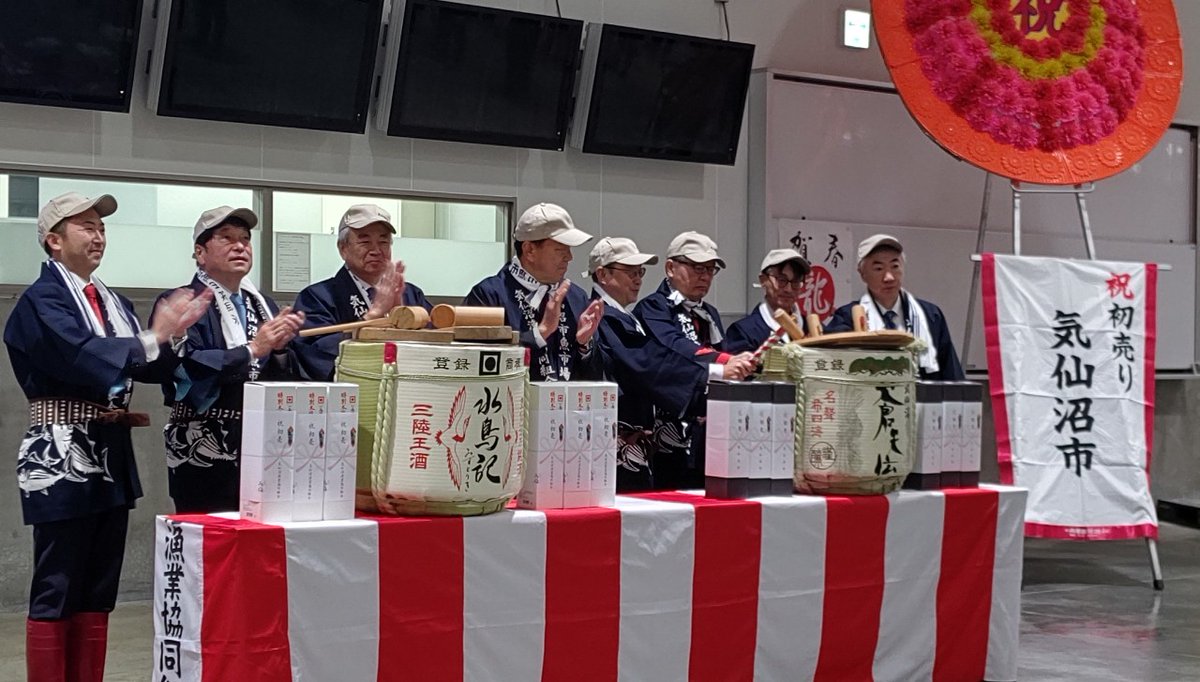 今朝は村井宮城県知事と地元 #気仙沼魚市場 を視察。カツオ、サンマ、カジキマグロ等が水揚げ。ですが、温暖化の影響か漁獲量は少なく、漁業者や市場関係者から不安の声も。その後、子牛市場を視察し上京。先程解散して今は地元に向かう新幹線。車内には与野党の元国会議員多数。まさに呉越同舟です。