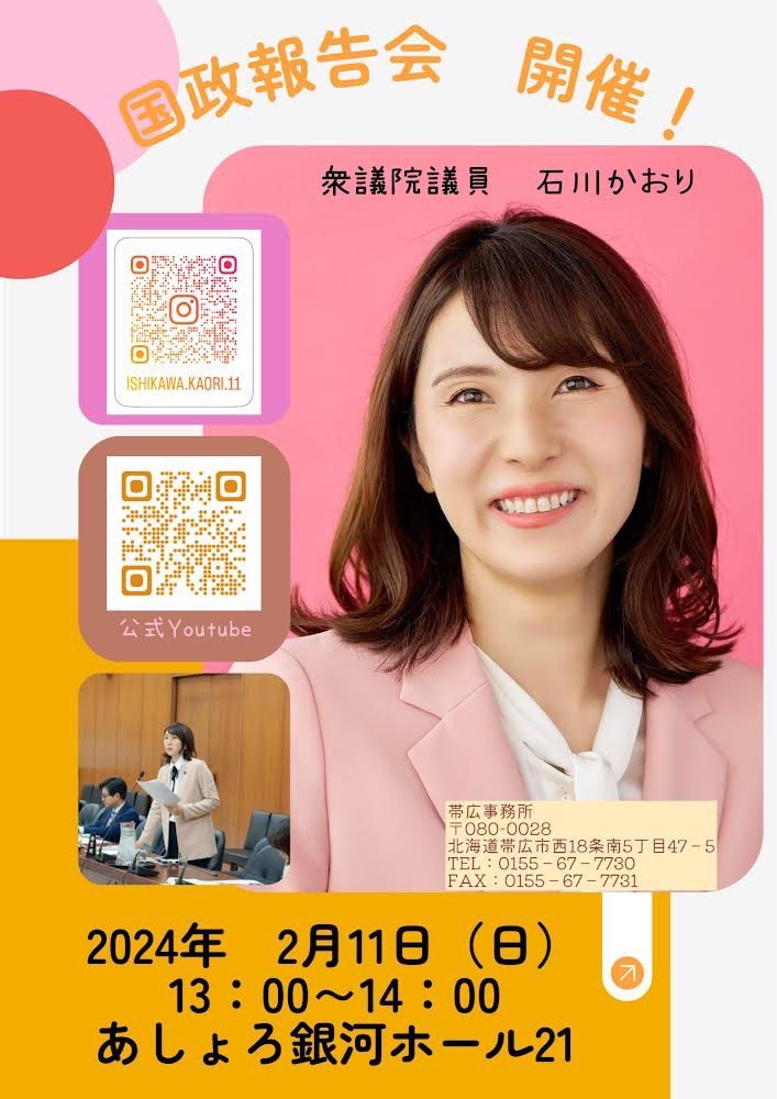 衆議院議員石川香織 @北海道11区(十勝)(@IshikawaKaori11)