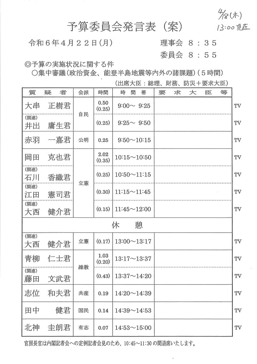 これから党大会です。