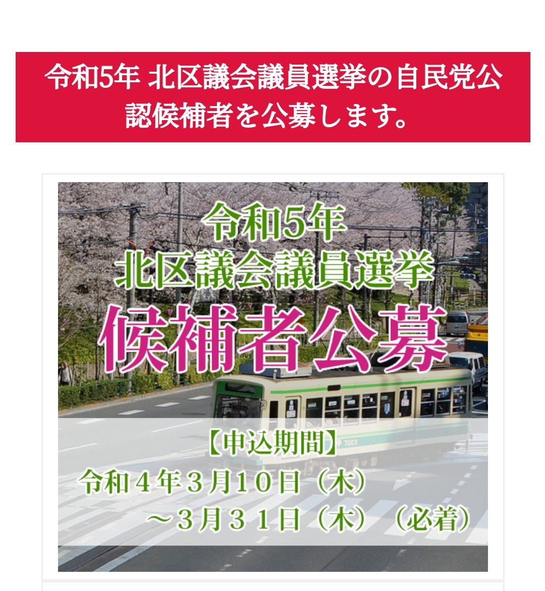 自民党東京都第12選挙区支部長、同北区総支部長