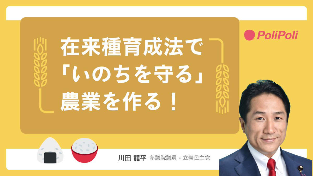 いのちを守る 参議院議員 川田龍平です。 東経大経卒。参行政監視委員長・環境委・拉致問題特別委。党両院議員総会長。原発事故子ども被災者支援議連、オーガニック給食議連、ヘルプマーク議連。食の安全・安心議連、薬害再発防止議連。岩手医科大客員教授。現在、ローカルフード法提出者: https://t.co/stpDjXXCuy