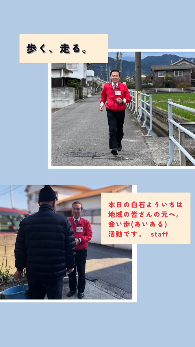 コメントありがとうございます広報活動も含めて,活動をさらに強化します!洋一さんに会うのにパーティー券は必要ありません自分の足で各戸をコツコツ訪問し,お声を伺う政治活動に引き続き取り組みます!Staff Y#今治市 #上島町 #西条市 #新居浜市 #四国中央市 #白石よういち #愛媛2区 #衆議院議員