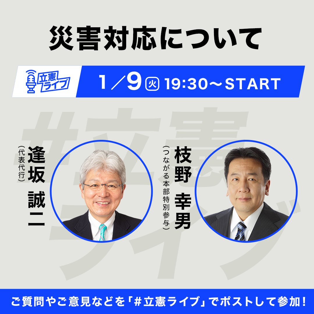 【令和6年能登半島地震10日目】 1月9日岡田克也幹事長会見「亡くなられた方々に哀悼の意を表し、被害に遭われた方々にお見舞いを申し上げる」と述べ「重大な事件が連続している。しっかり対応していきたい」と話した。(白石洋一事務所)
