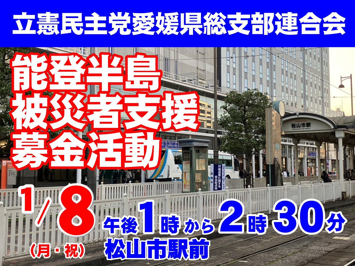 元日、16時10分頃、能登半島沖に地震とともに、大津波警報が発令され党対策本部を設置しました。私も党災害・緊急事態局四国ブロック局長として愛媛から今後の対策と可能な支援をしていきます。