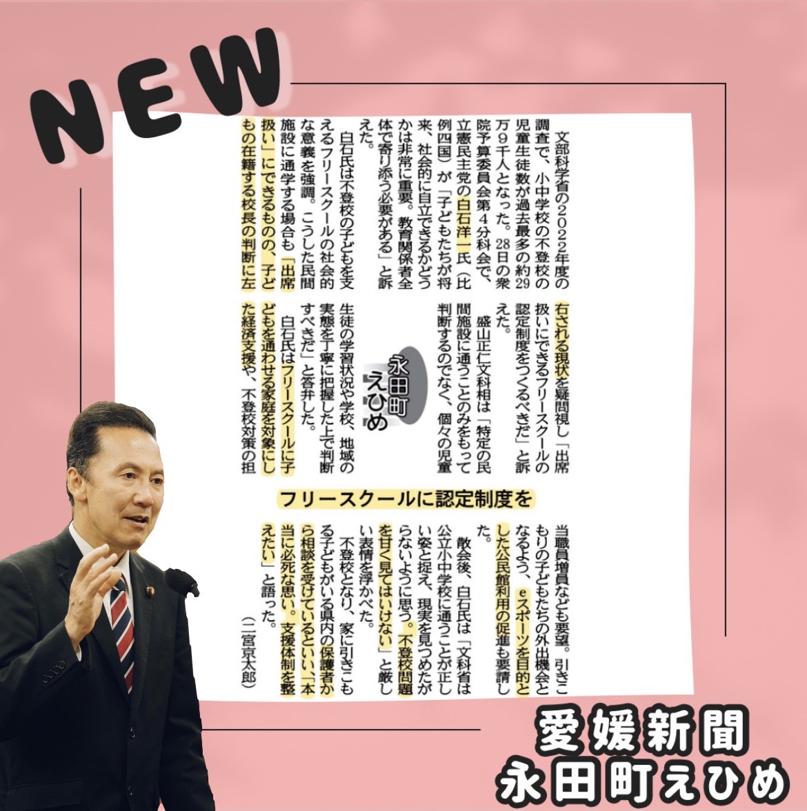 白石よういち 衆議院議員(愛媛2区・四国中央市,新居浜市,西条市,今治市,上島町)(@shiraishiyoichi)