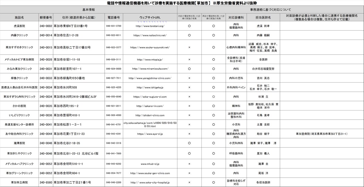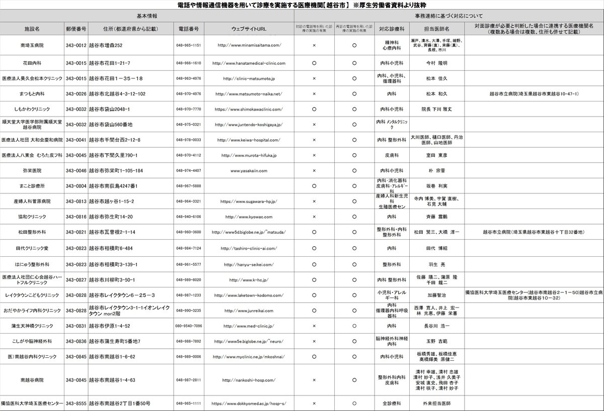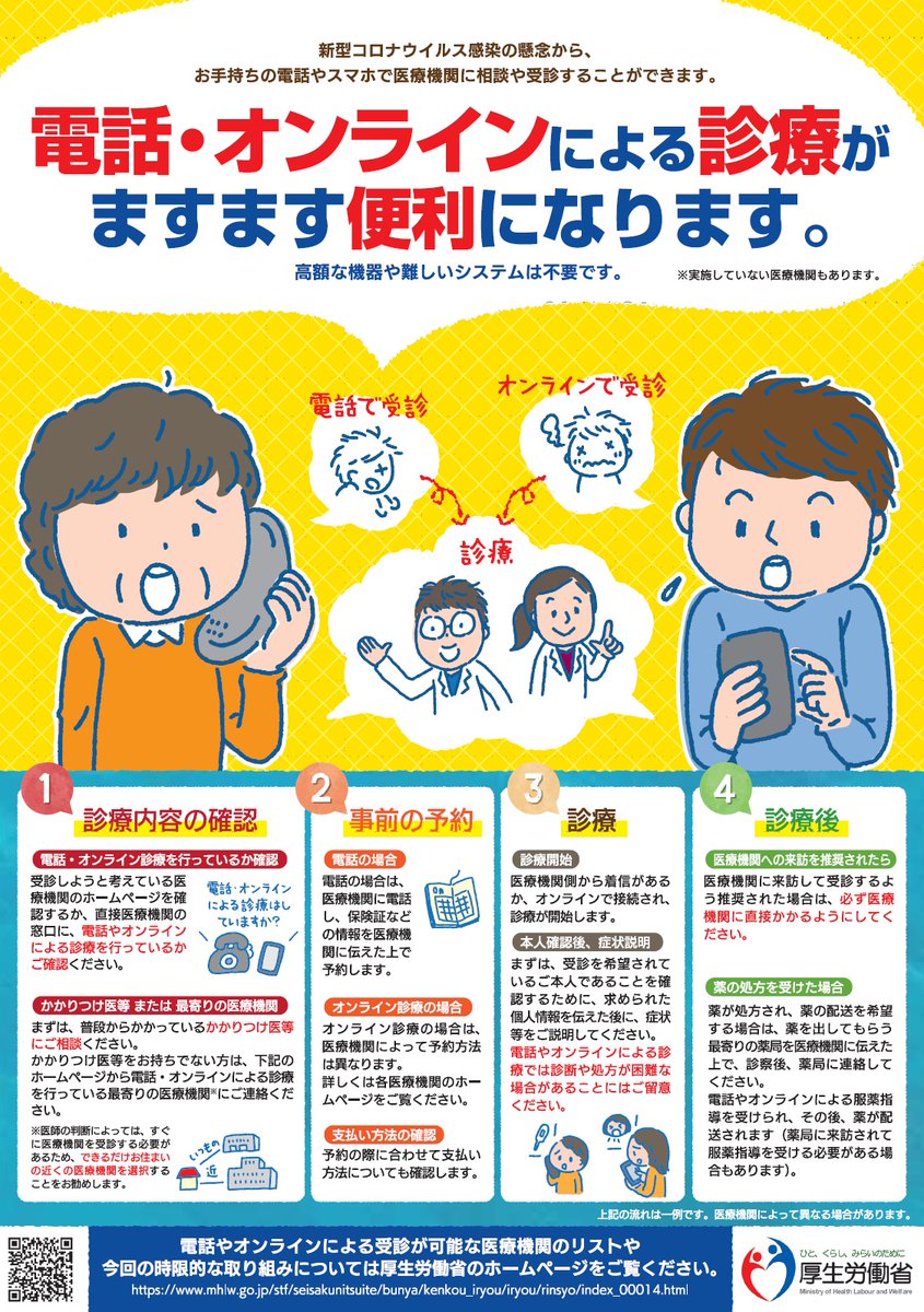 昨日お知らせしたオンライン診療の医療機関ですが、不定期に随時更新されるとのことです。最新の医療機関一覧は、下記厚生労働省のリンクからご確認ください。