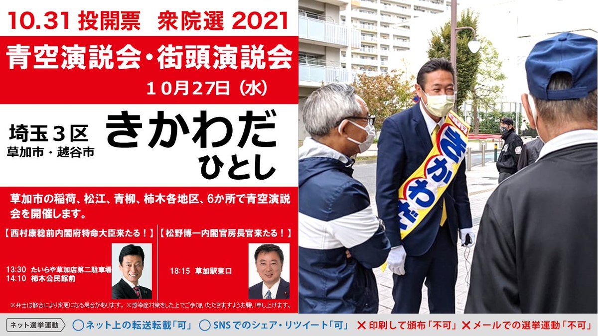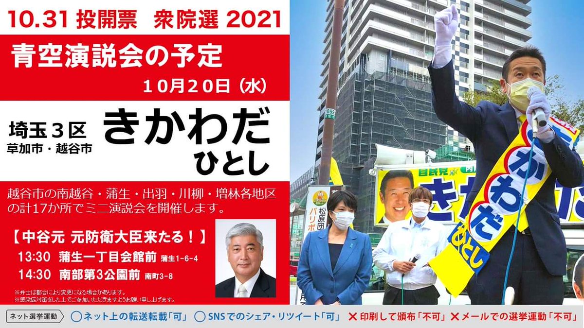 #埼玉3区 #きかわだひとし #衆院選2021 #越谷市 #なんでも答えます #はっとり正一 #越谷市長選挙