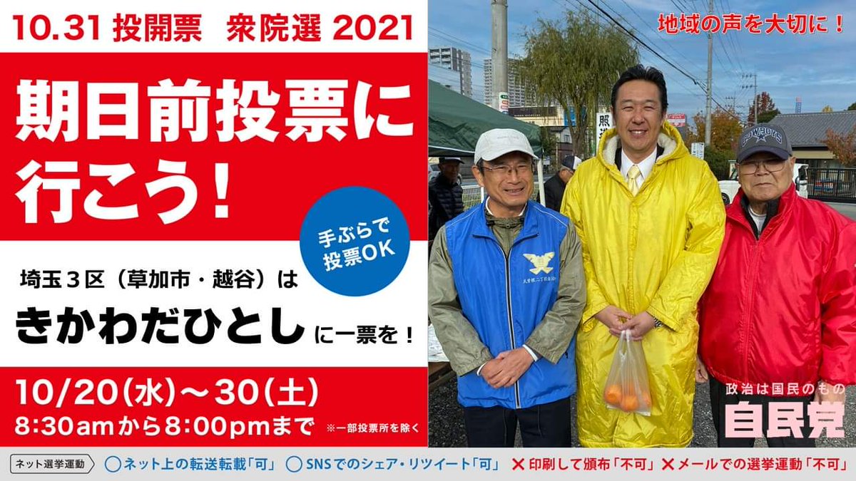 #埼玉3区 #きかわだひとし #きかわだ #黄川田仁志 #黄川田 #衆議院議員選挙 #総選挙 #越谷市 #草加市 #なんでも答えます #黄色 #選挙に行こう