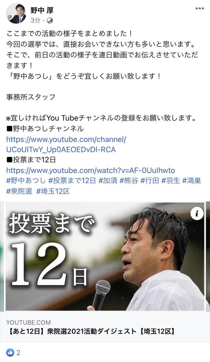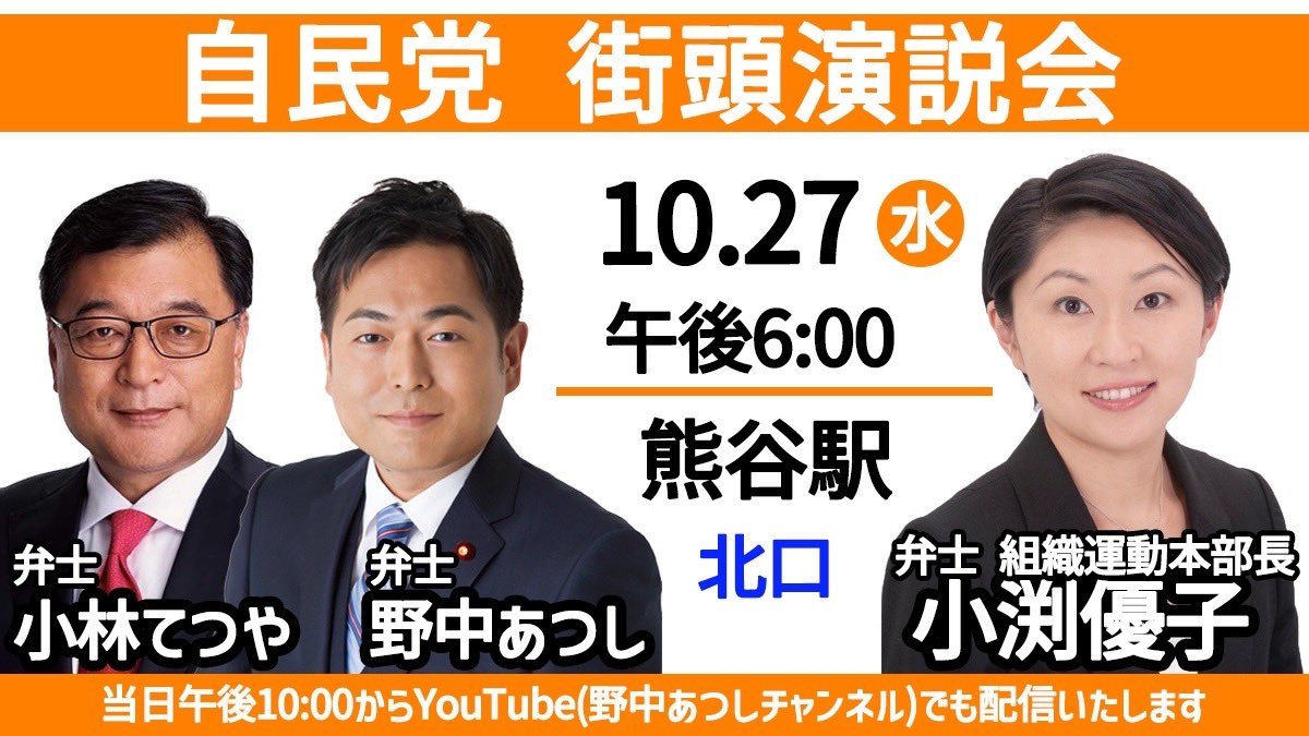 #野中あつし #JCI #加須 #熊谷 #行田 #羽生 #鴻巣 #衆院選 #埼玉12区