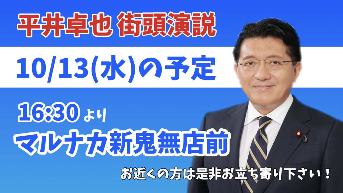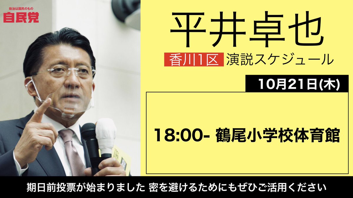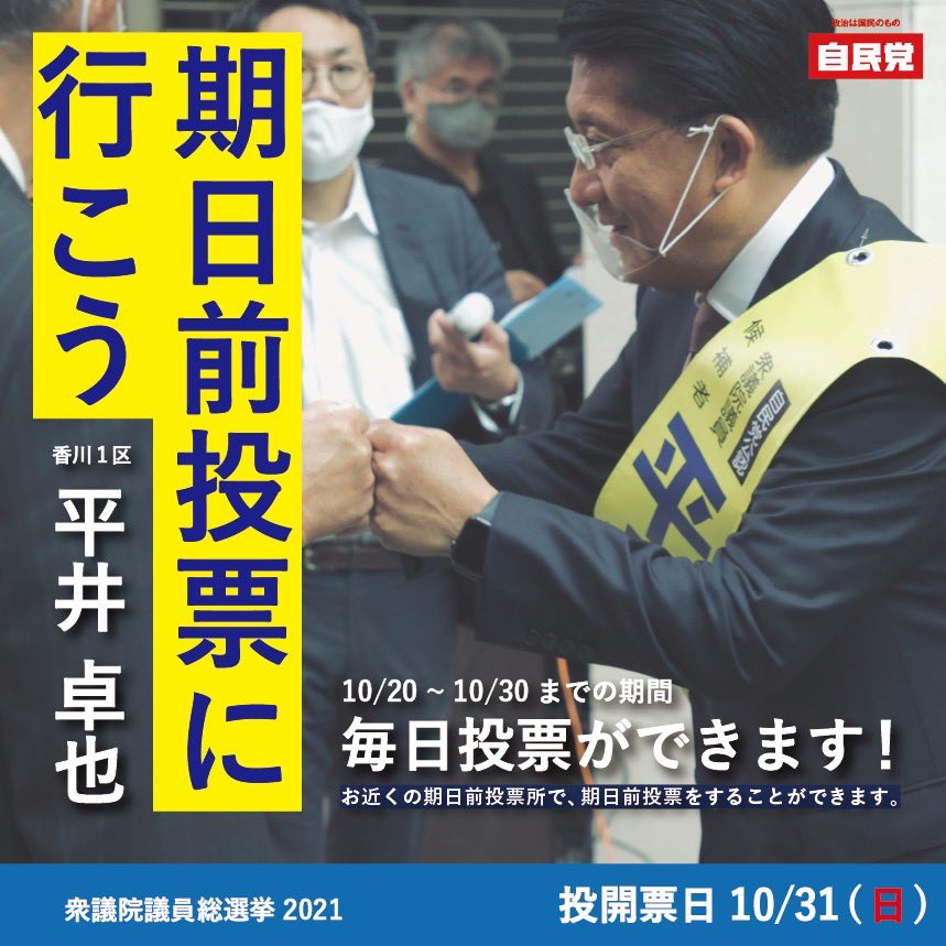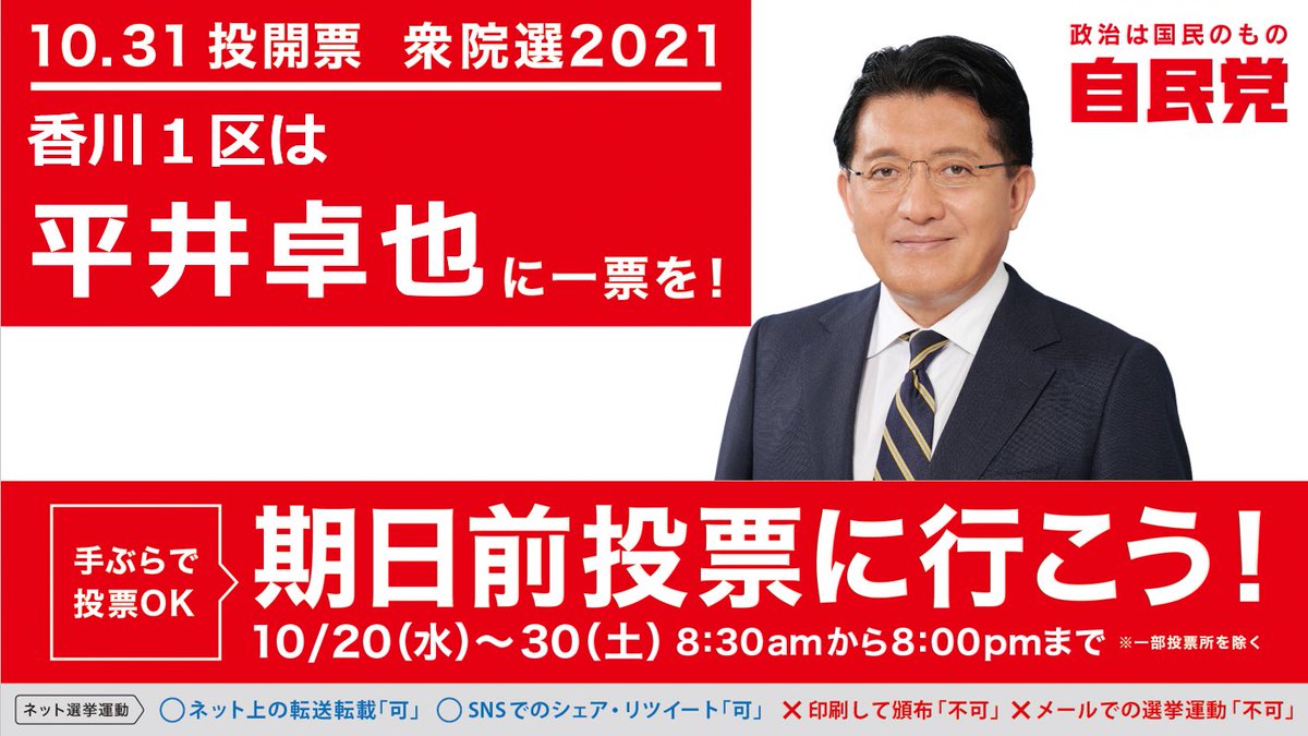 【デジタル為書き】選挙戦もラスト1日となりました。皆様の応援を励みに最後の最後まで戦い抜きます。是非デジタル為書きで応援いただきTwetterでシェアお願いします。https://t.co/rXBvT1Sx4r #平井卓也