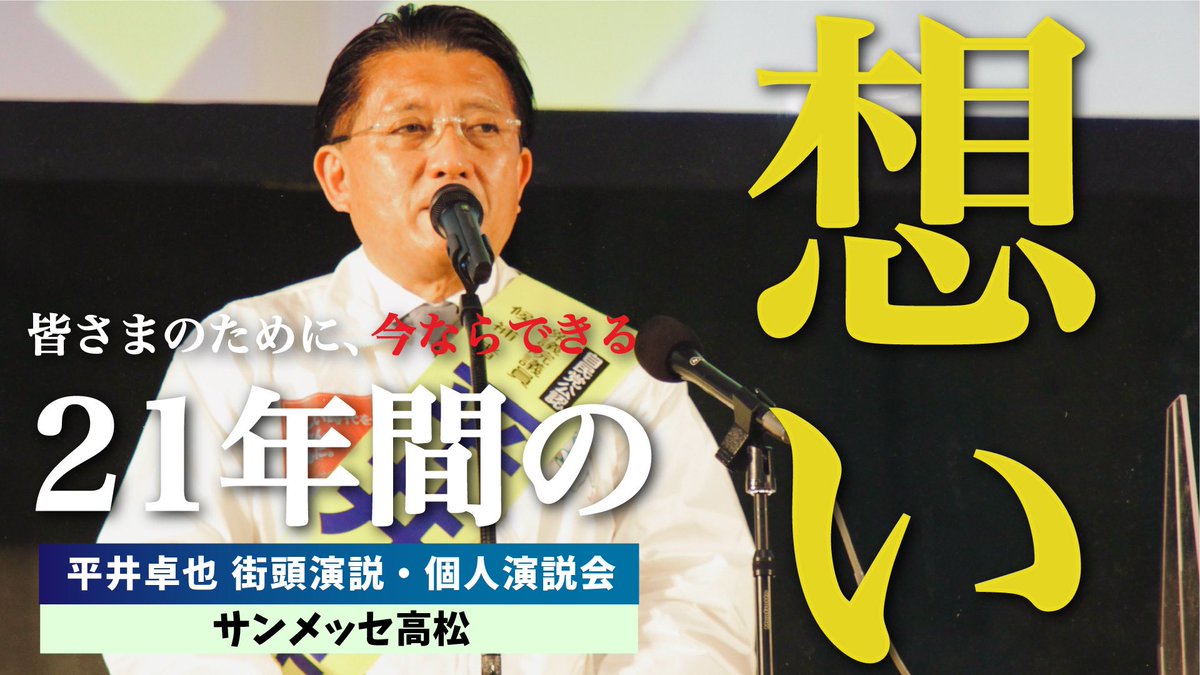 比例四国での当選報告の街頭演説。支援者の皆さんが駆けつけてくれて感激しました。ありがとうございました。#平井卓也 #街頭演説 @ Takamatsu, Kagawa https://t.co/LuXCFSnohy