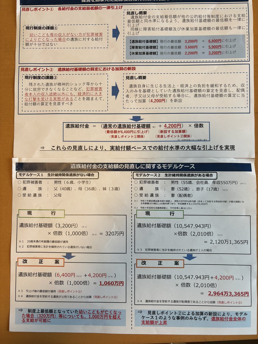 ました。今回の改正、上川外務大臣や本制度を導入した際の総理大臣のご子息である小泉進次郎衆議院議員が尽力されました。私も上川大臣に誘われて議連に参加したのですが、犯罪被害者を救う会の岡村弁護士が、ご自身も奥様を亡くしておられるのですが、私の父が都知事の時、東京都に財政的支援を