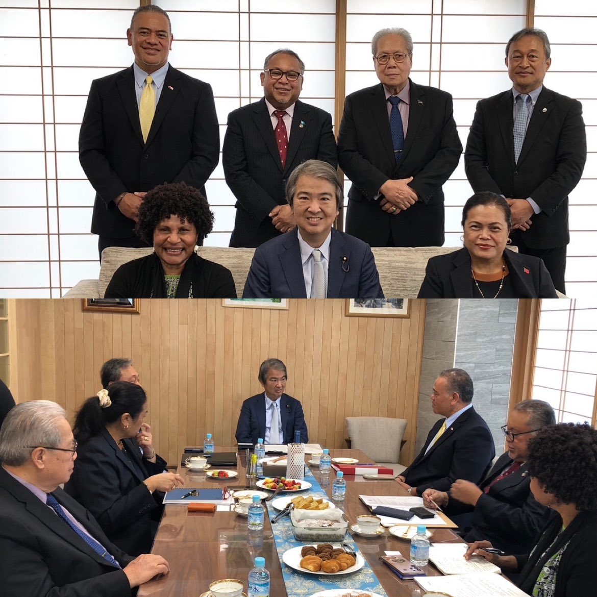 お聞きしました。また、夜は防衛省主催の太平洋島嶼国防衛大臣会合(JPIDD)のレセプションに参加して、ミクロネシアのフリッツ大使そして日本を訪問されたバカランド司法大臣代行と記念撮影をさせて頂きました。7月の太平洋・島サミットに向けて準備を進めて参ります。
