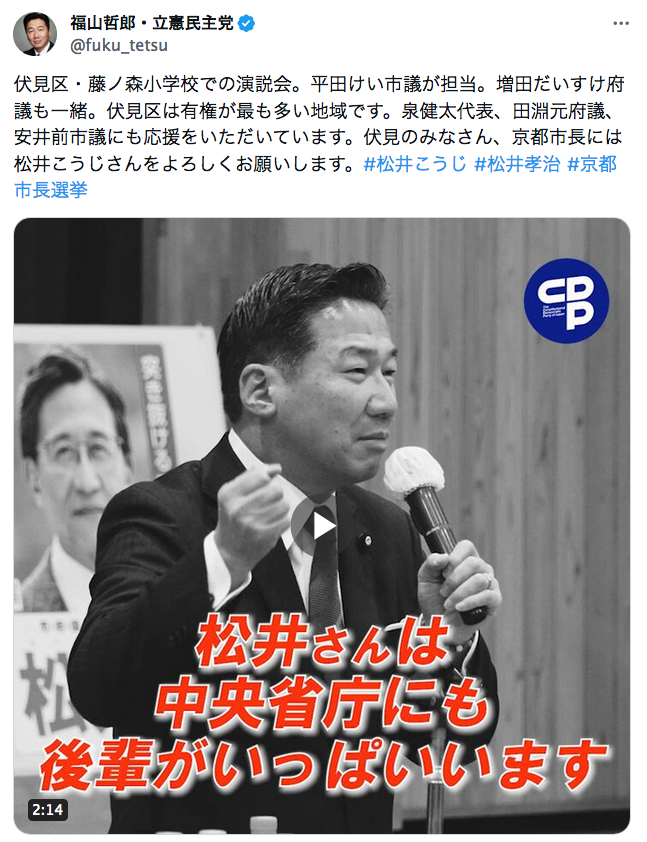 前橋市長選は小川晶さん。京都市長選は松井孝治さん。応援した両氏が当選。皆様、有難うございました!自治は多様。選挙の構図も様々です。ですので両氏には他候補に届けられた声や期待にも謙虚に耳を傾け、「市民のため」の市政を期待します。