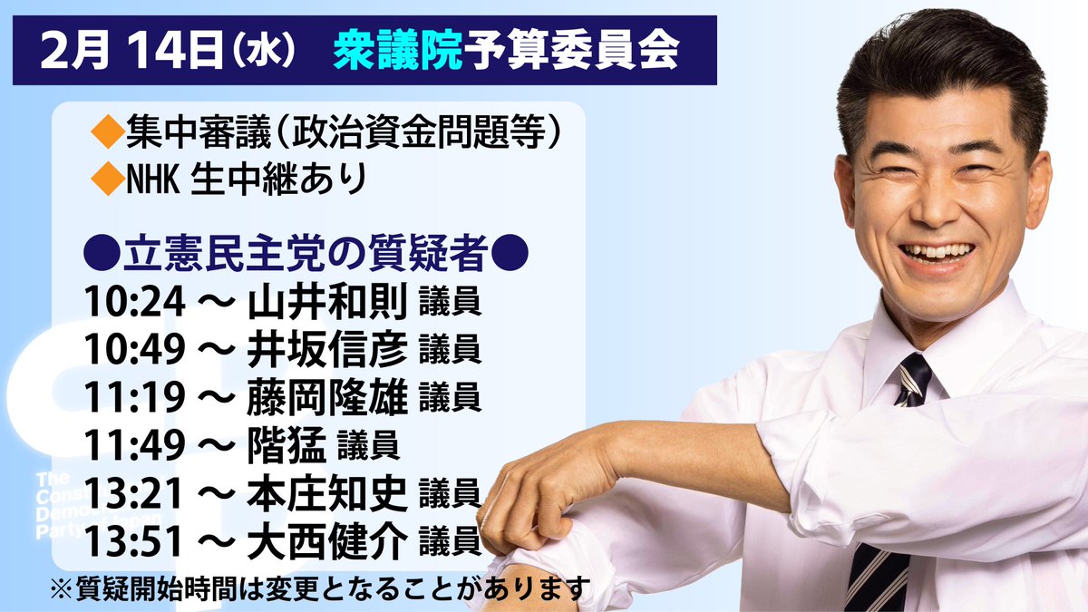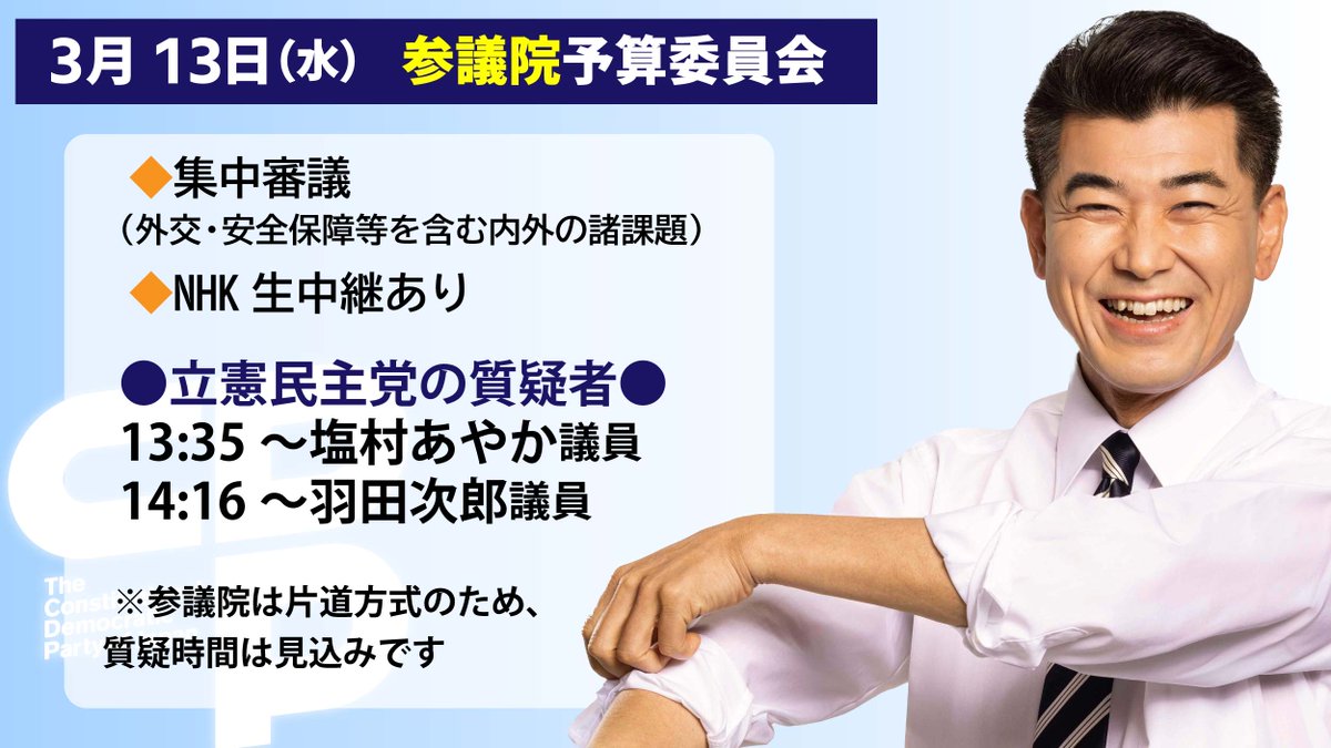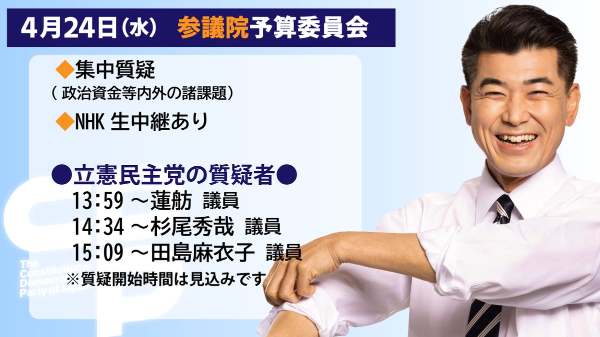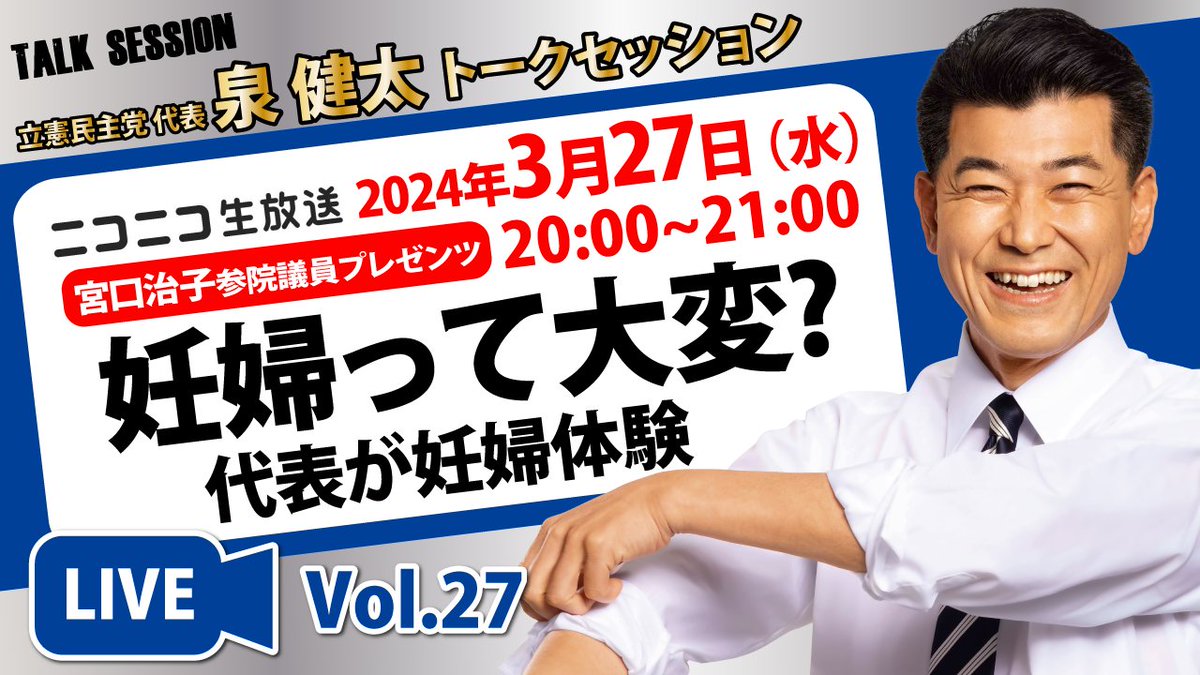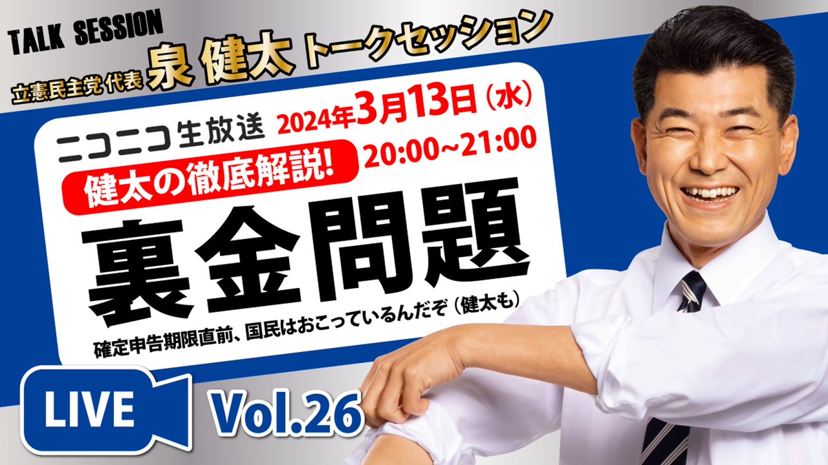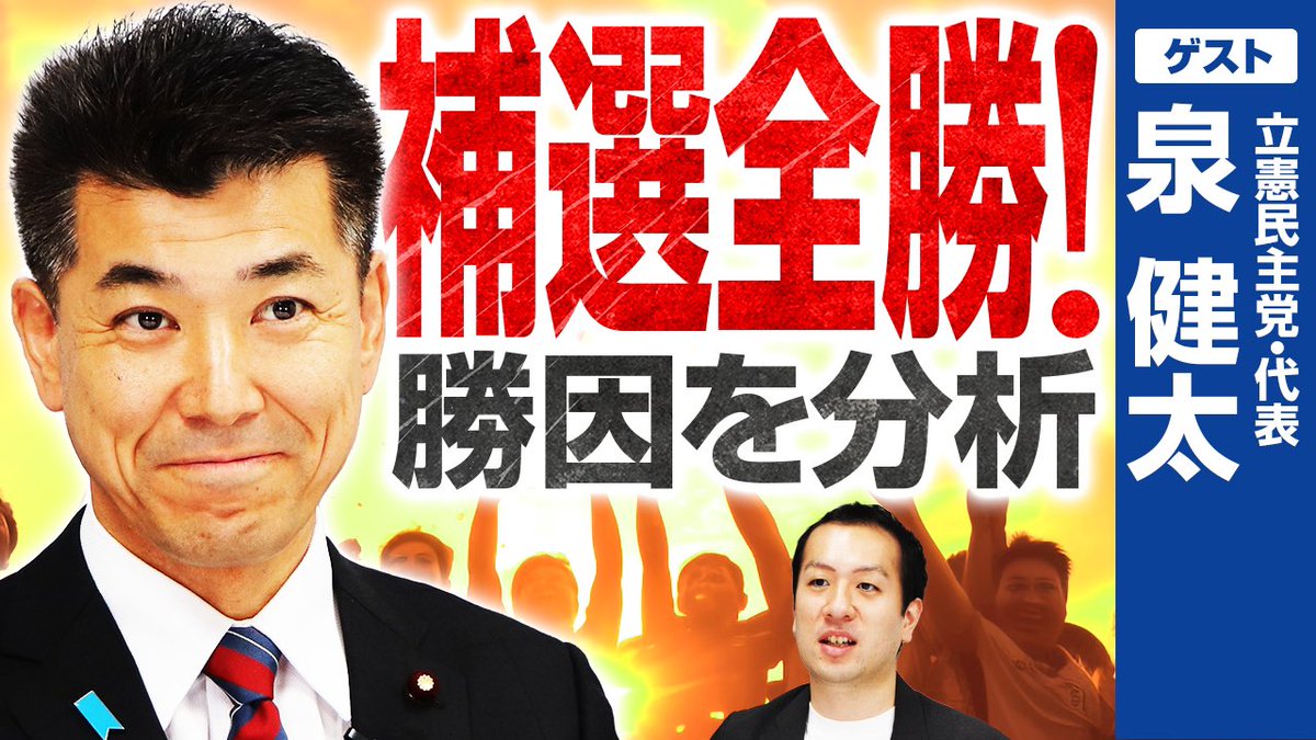 今夜(5月8日)20:00〜のニコ生番組「泉健太トークセッション」は、亀井亜紀子、山田勝彦、酒井なつみ、補選当選3議員が生出演!ぜひご覧ください。(ニコ生,X,YT,FB,IGで配信)YouTubehttps://youtube.com/live/cI7fjBX5_u0?si=N4hrSPowiqDYZly_…#泉健太トークセッション