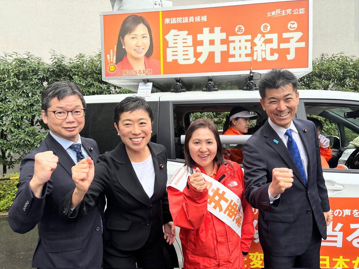 皆様、有難うございます。島根1区 立憲民主党公認 亀井亜紀子が当選確実となりました。有難うございました!