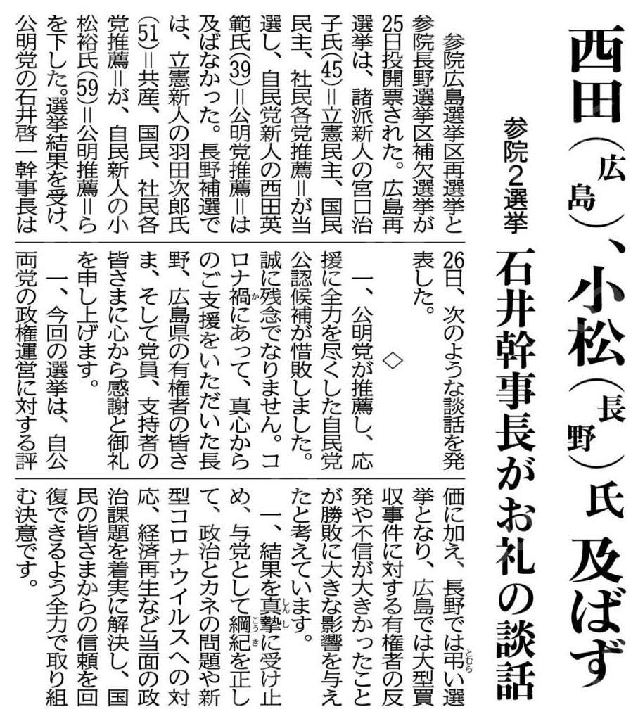 参議院長野補選。