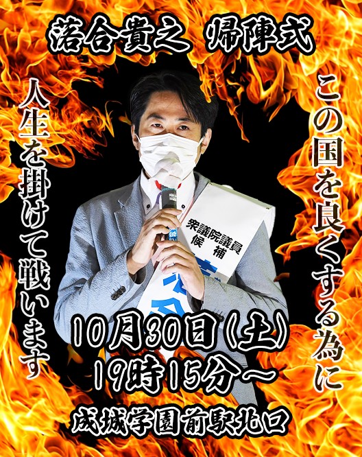 10月26日祖師ヶ谷大蔵駅前にて開催された、『落合貴之街頭演説会』の映像をYouTubeにアップしました。応援弁士は元モーニング娘。の市井紗耶香さん、全国を飛び回りお忙しい中、落合貴之への応援演説を頂きました