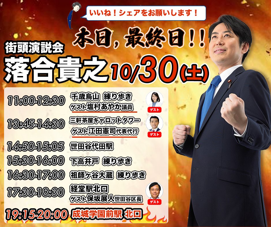 この後、三軒茶屋で行われる落合貴之街頭演説の模様をライブ配信でお送りします