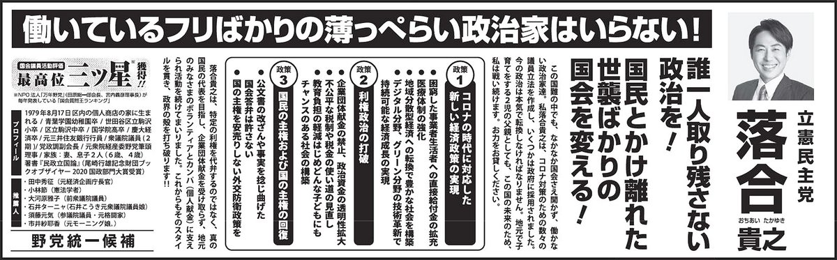 誰一人取り残さない政治を!《落合貴之 衆院選2021》