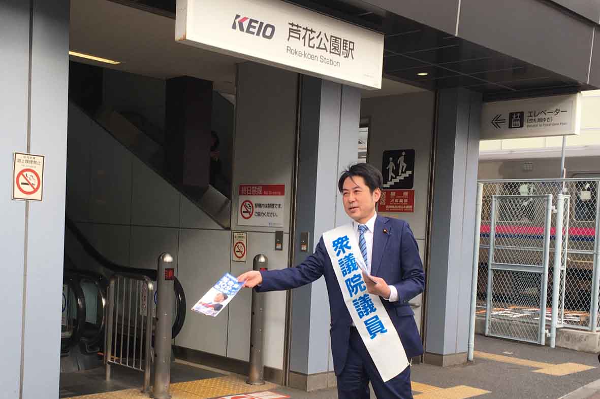 ついに最後の街頭演説です! 成城学園前北口から落合貴之、最後の演説です!!
