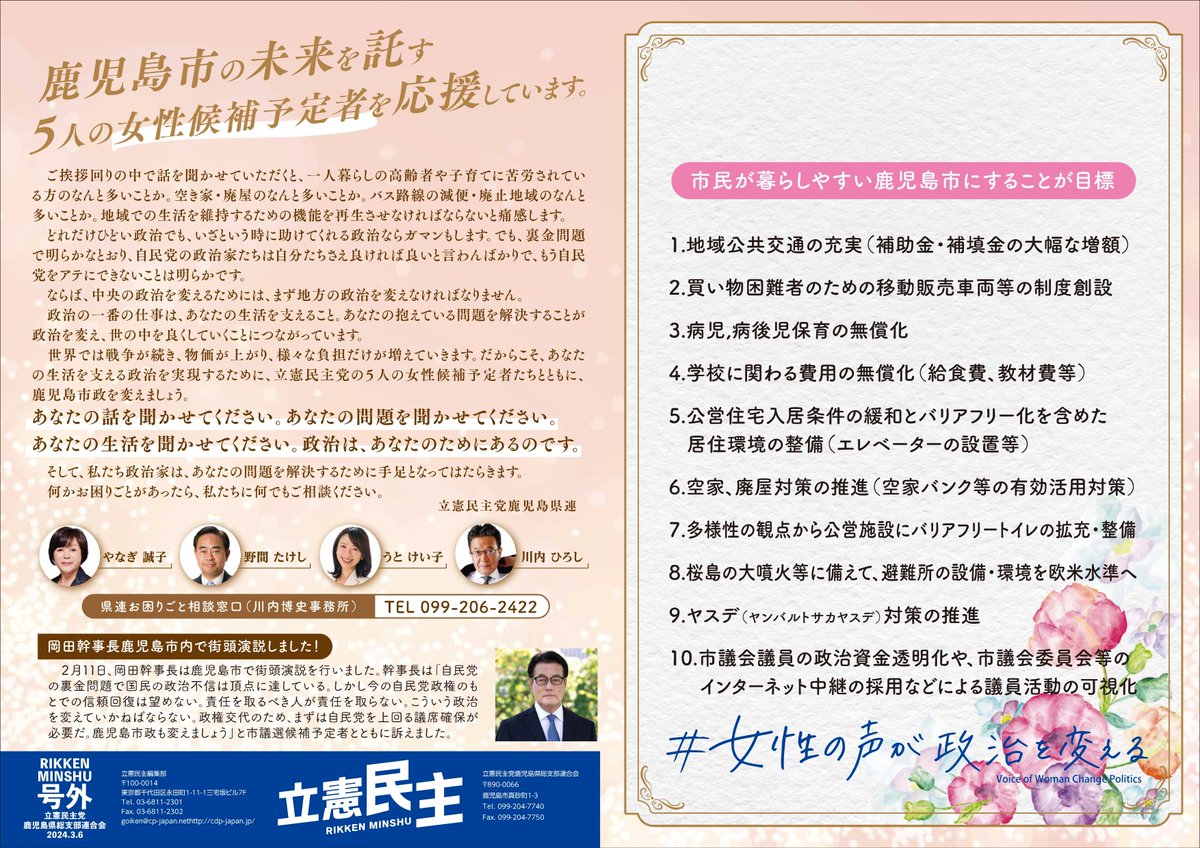 御時間ある方、どうぞ。鹿児島市議選予定候補5人も揃います。もちろん、私も参加します!