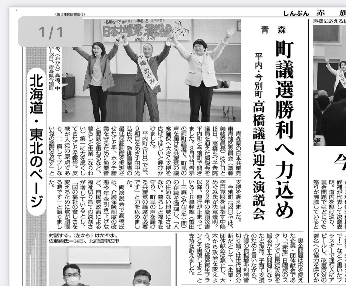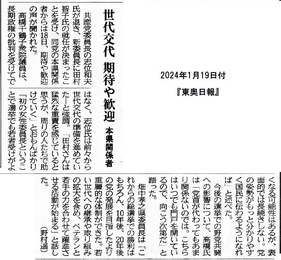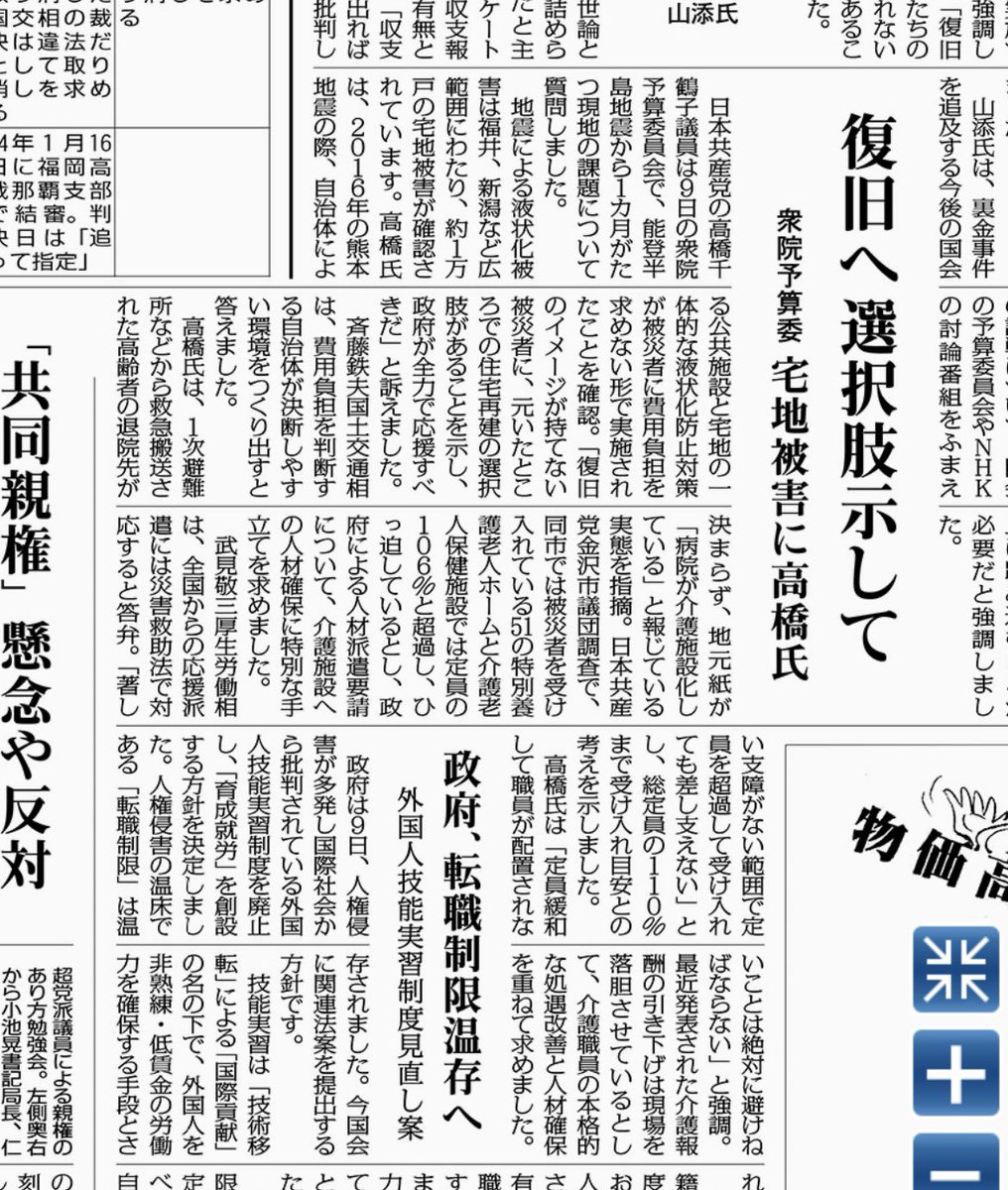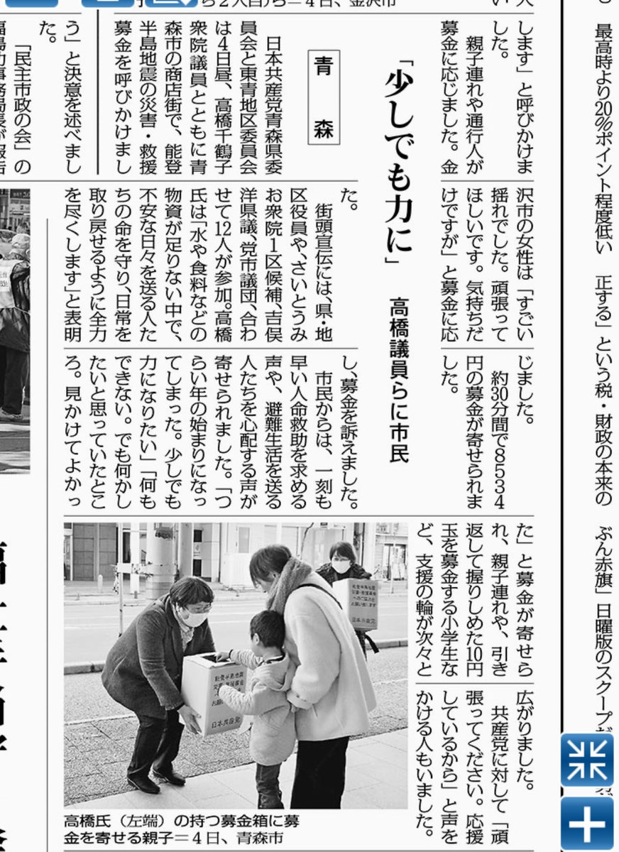 2〜3日の能登半島地震についての赤旗記事です。能登半島1.1地震/職員不足「長期の支援必要」/高橋議員 3市町で調査