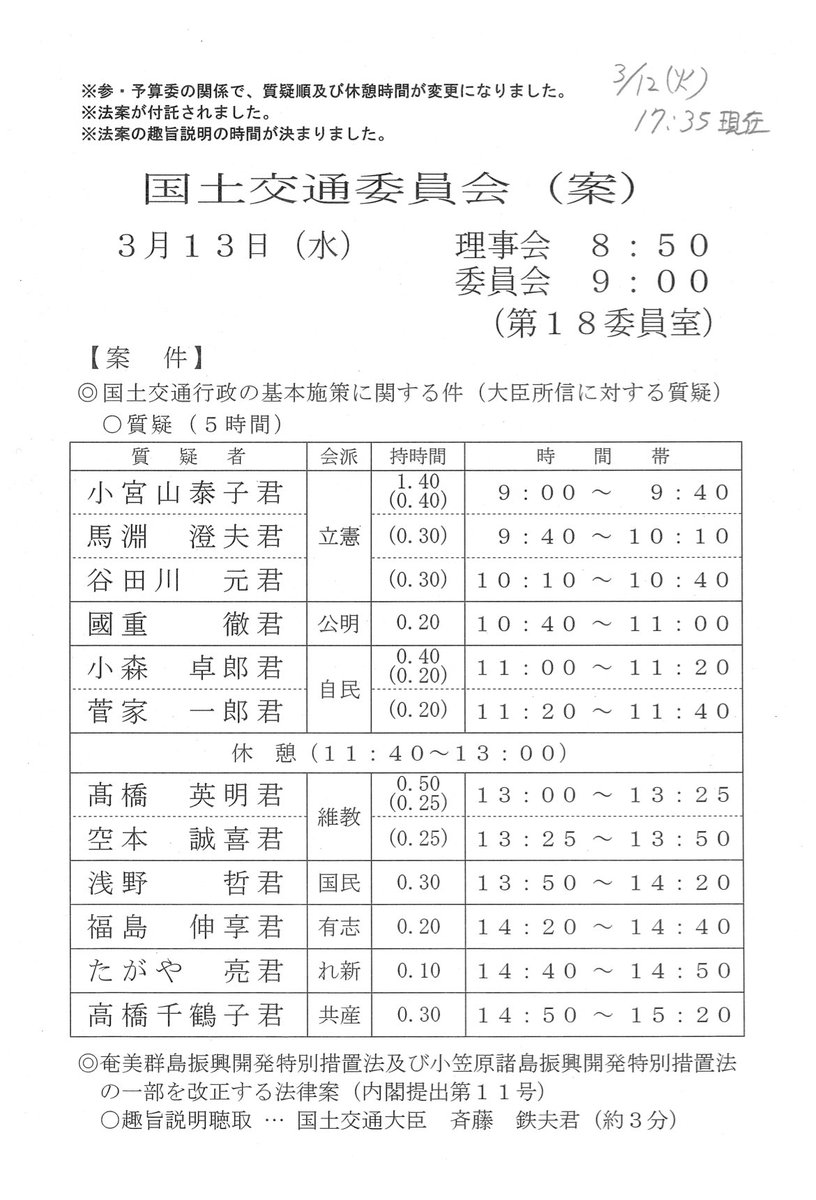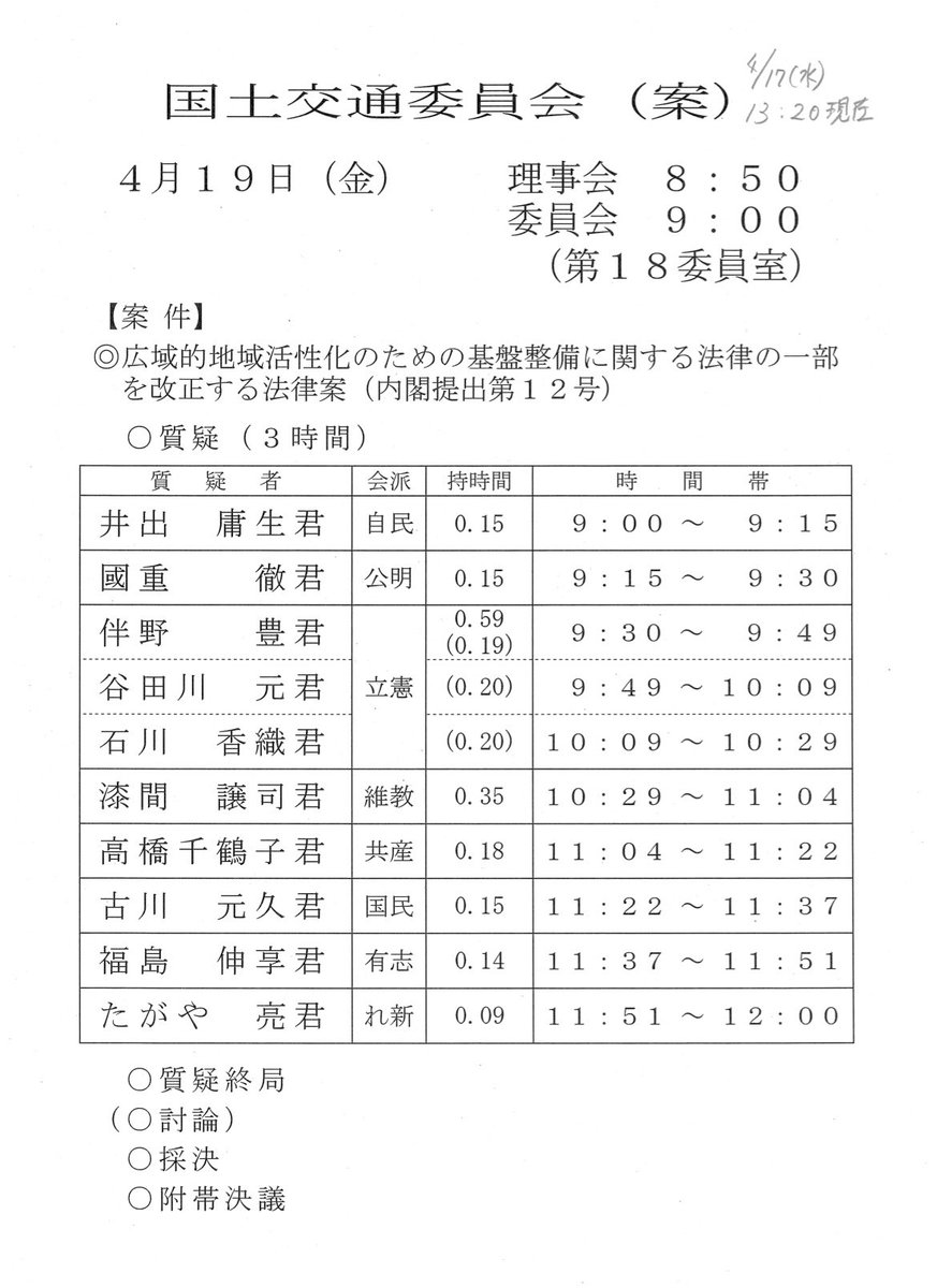 拡散希望!明日15日は国交委員会一般質疑。11時24分から16分間、#リニア新幹線と国土形成計画 について、斉藤国交大臣に質問します。短いのでぜひ、ネットで応援お願いします。https://shugiintv.go.jp/jp/
