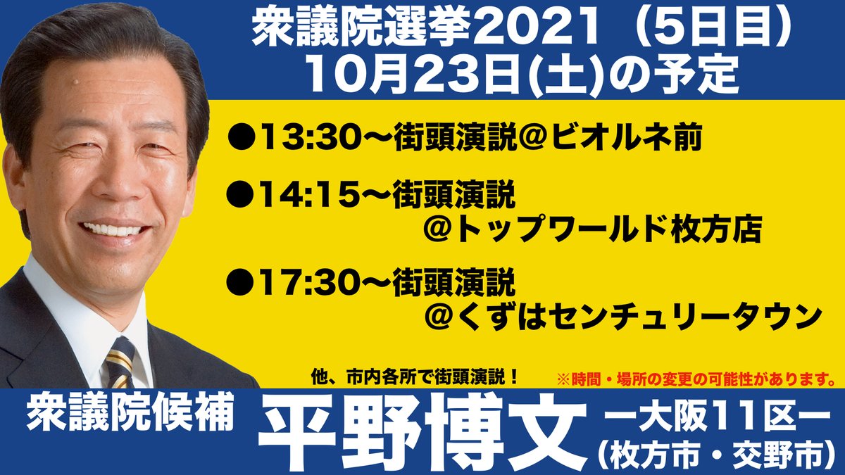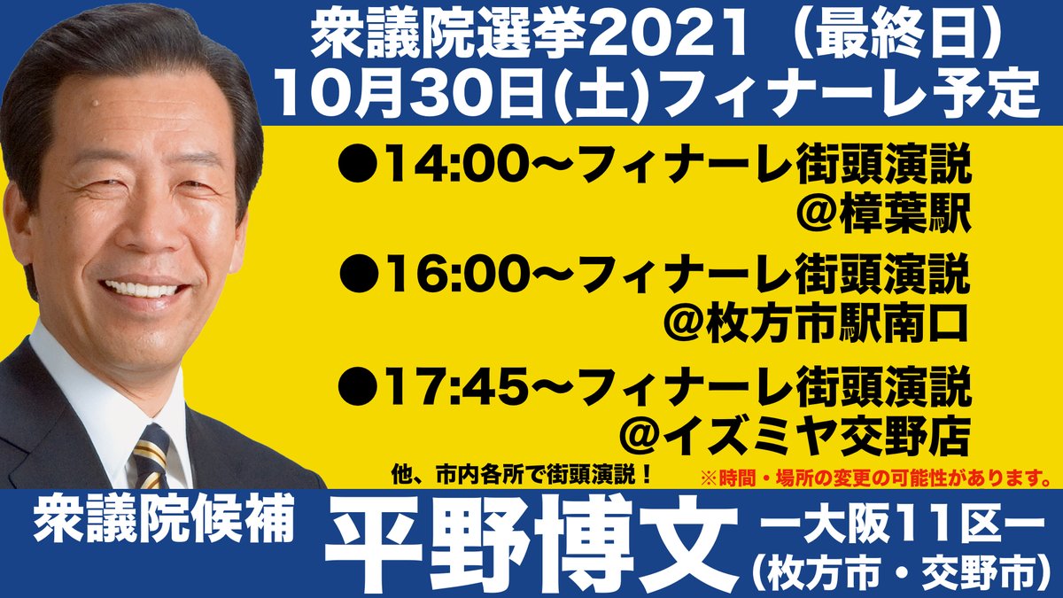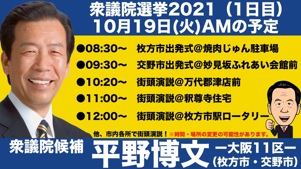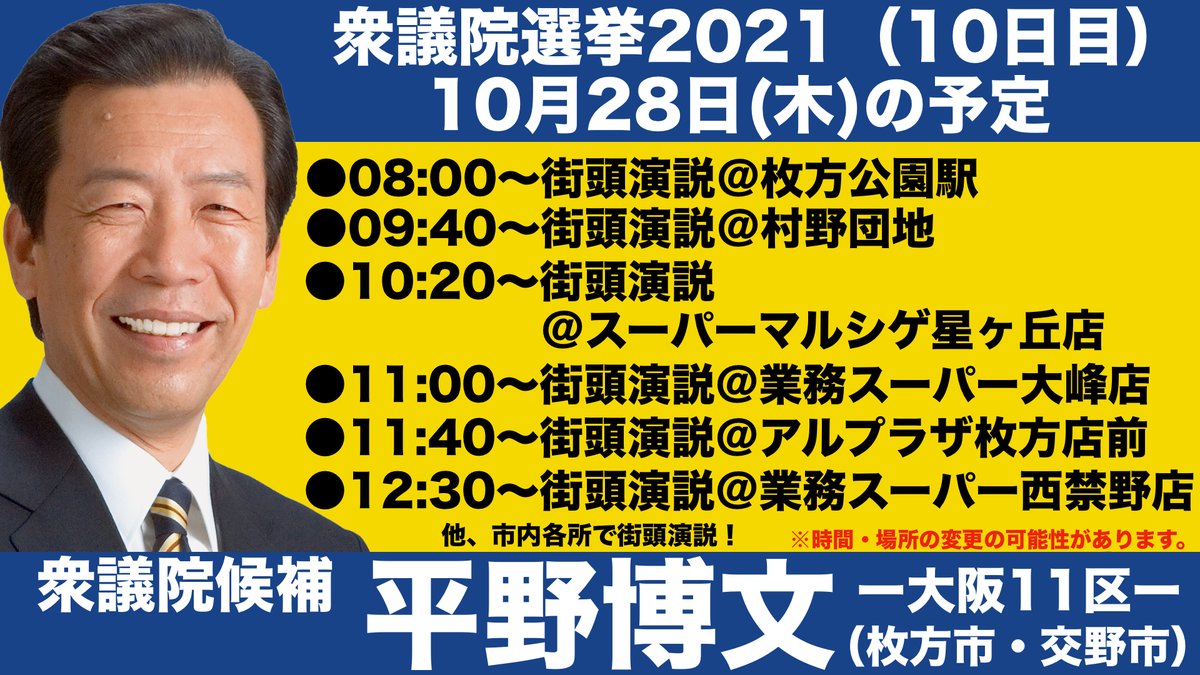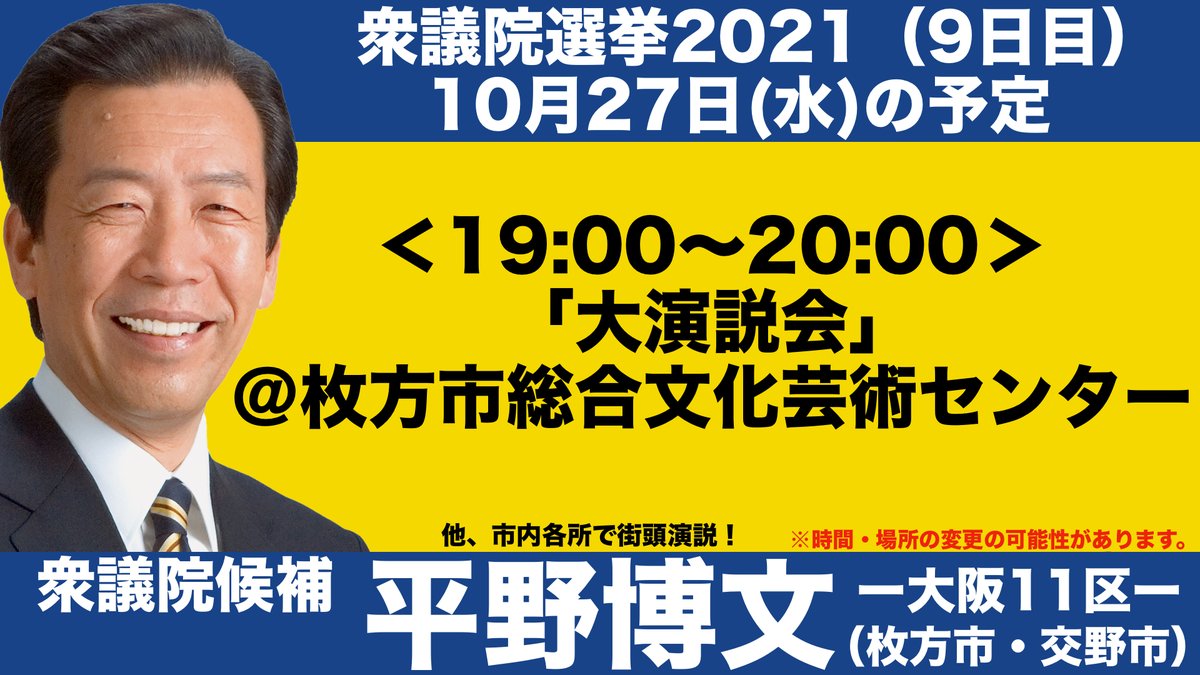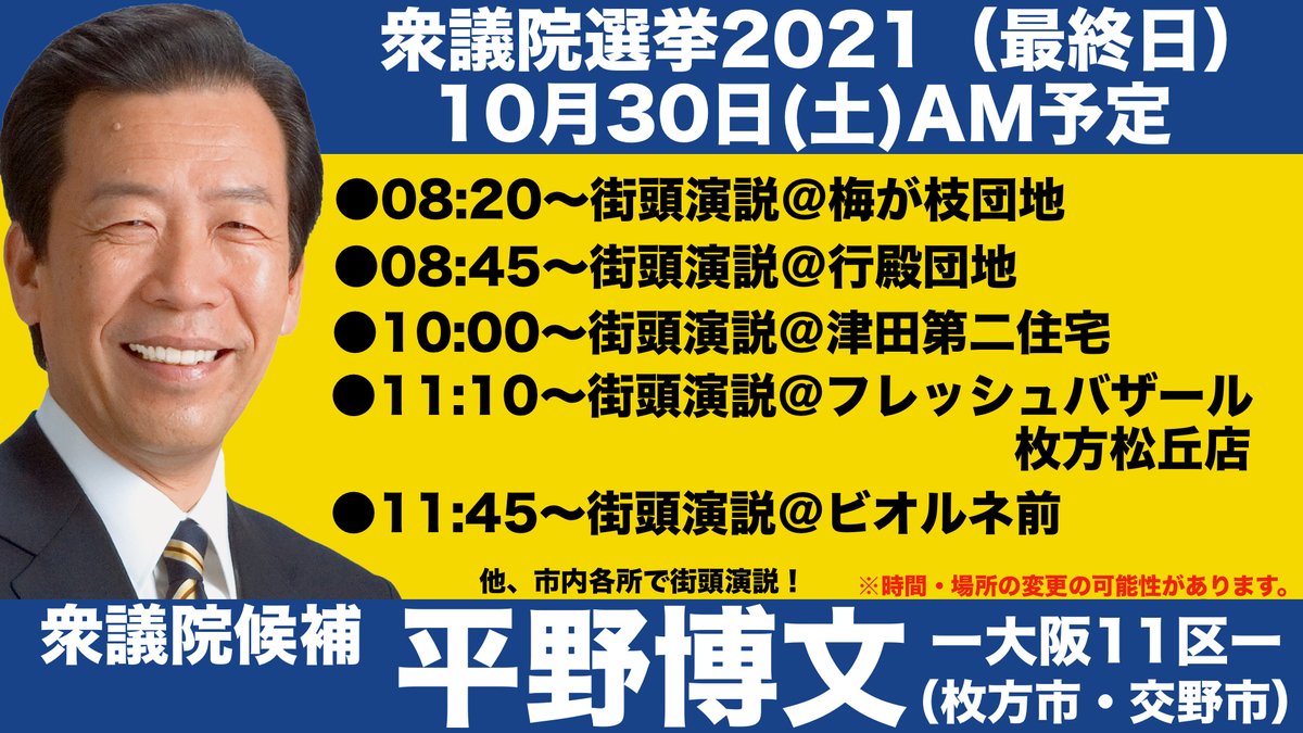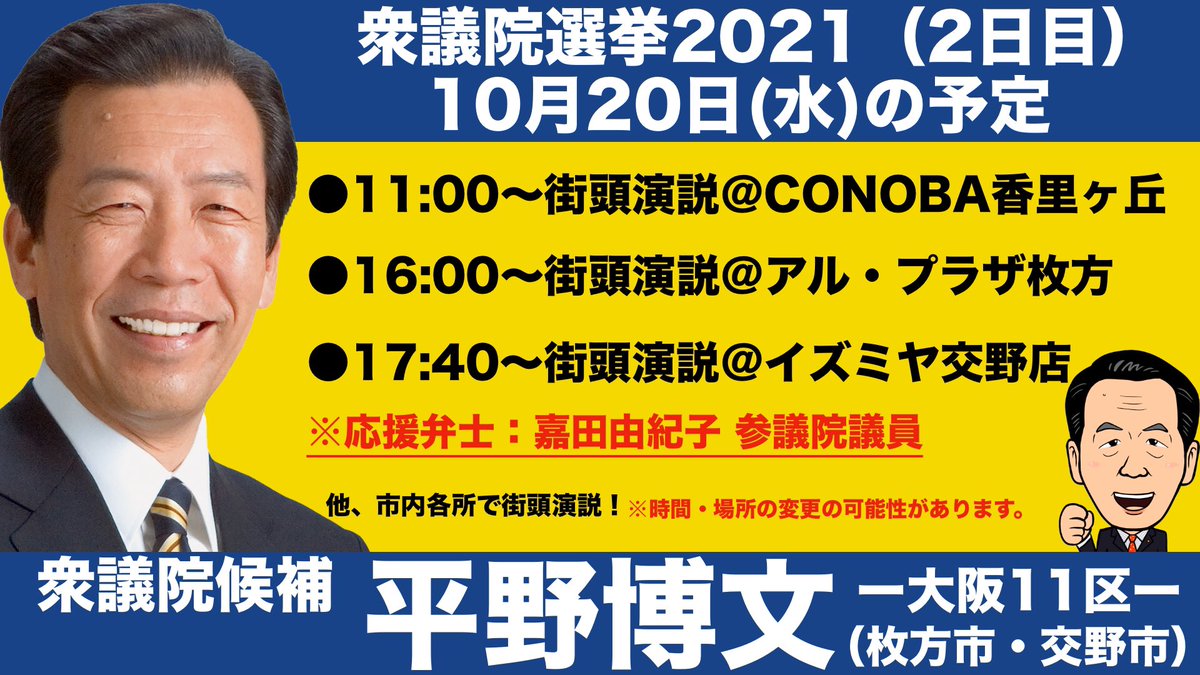 #平野博文 #衆院選2021 #大阪11区 #枚方市 #交野市