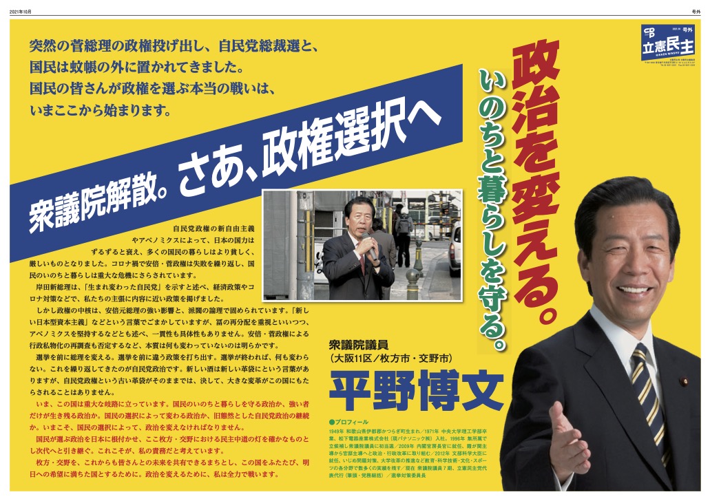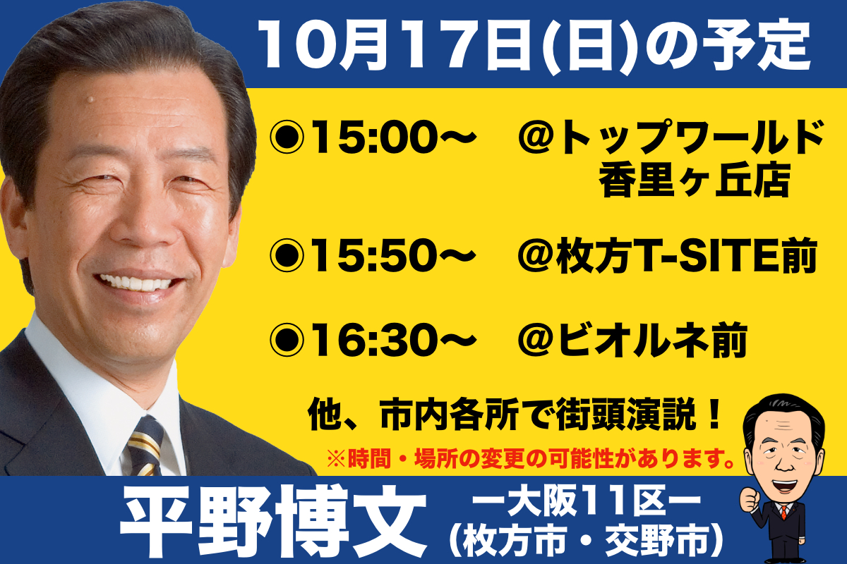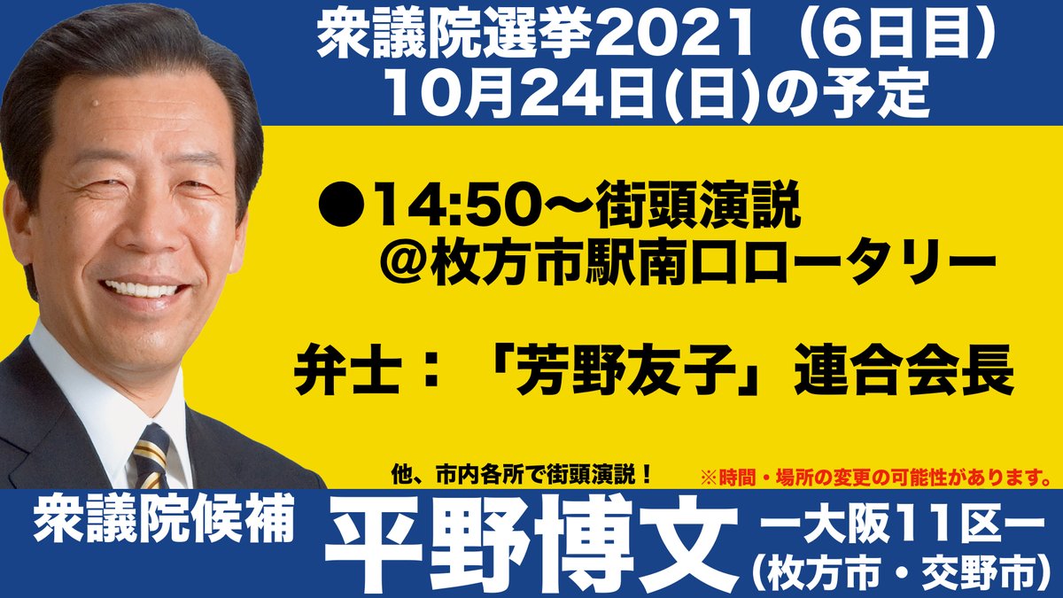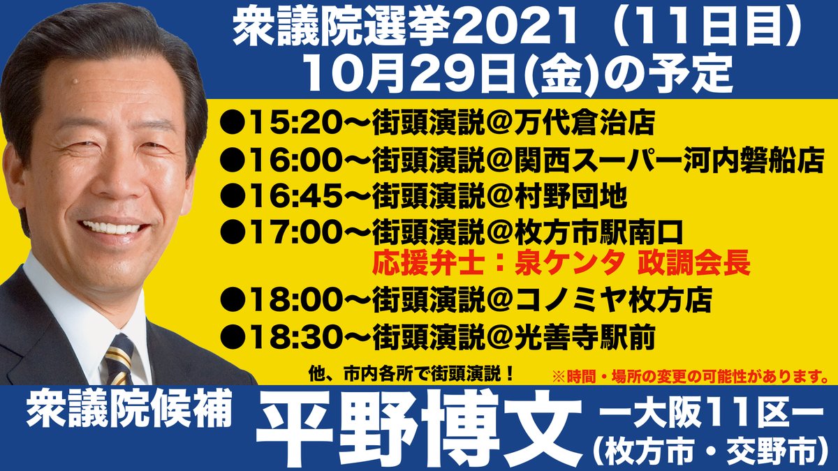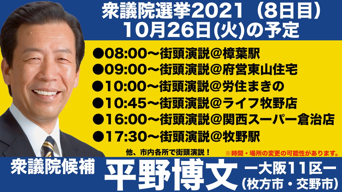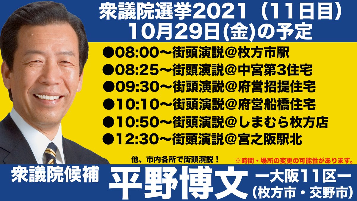 #平野博文 #衆院選2021 #大阪11区 #枚方市 #交野市