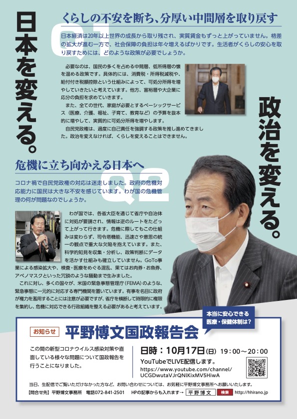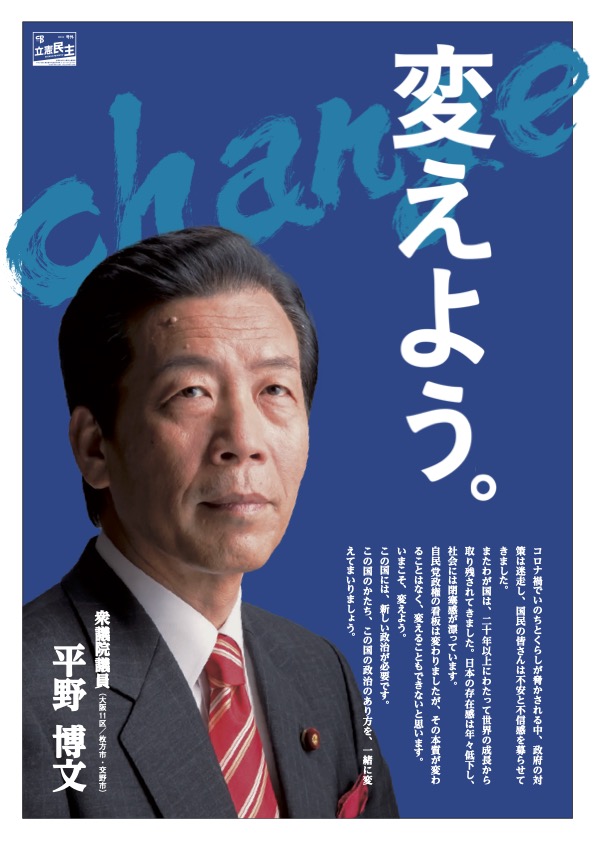 『平野博文』へ大切な一票を託していただきますよう宜しくお願い致します。